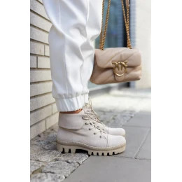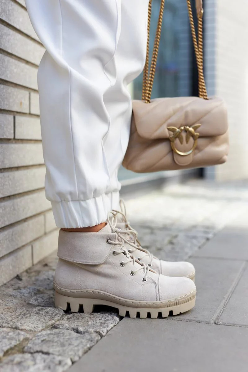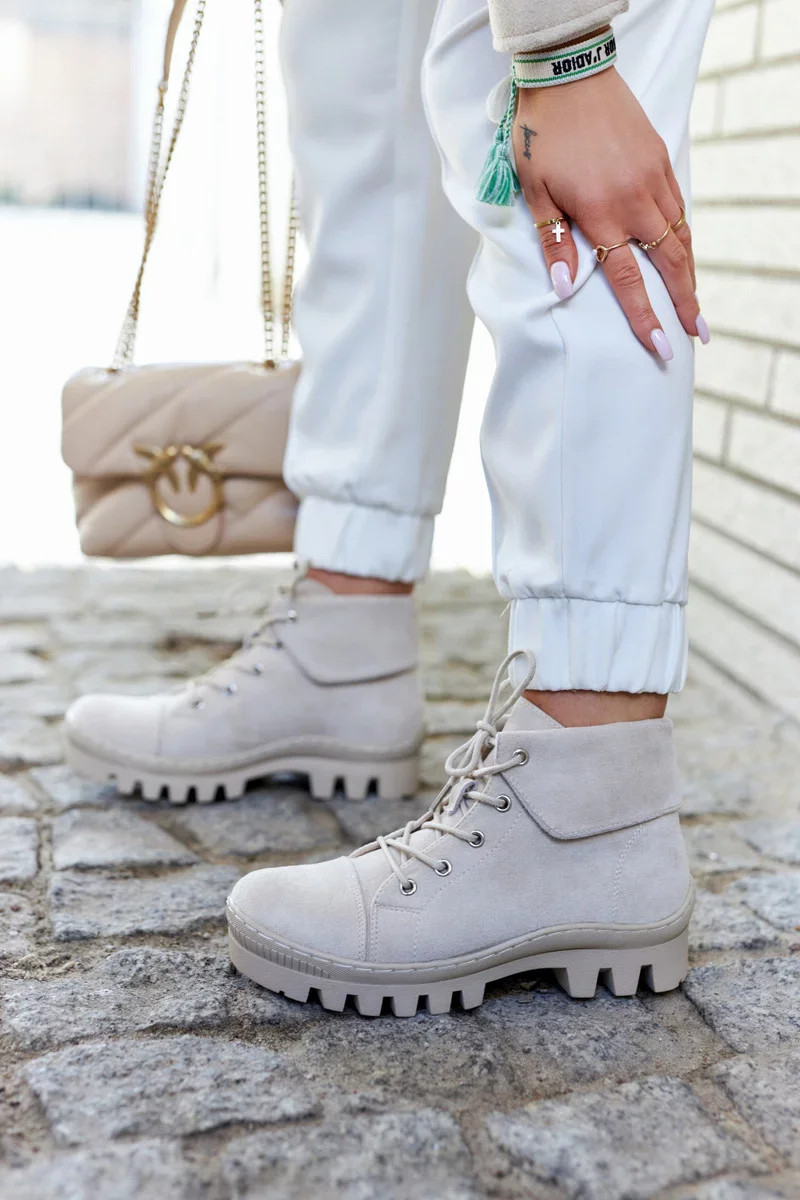 Trappery jsou vyrobeny z ekologického semiše s kulatým zavazováním na tkaničky. Jsou nasazeny na tlusté podrážce s módními výřezy v podrážce. Tuhá, zaoblená špička. Svršek ke kotníku, který je navíc mírně prohnutý. Skvělé boty pro ležérní styling. Mají měkkou stélku z ekokůže a vyztuženou patu. Perfektní boty na jaro, musíte je mít! Při výběru velikosti použijte tabulku velikostí.