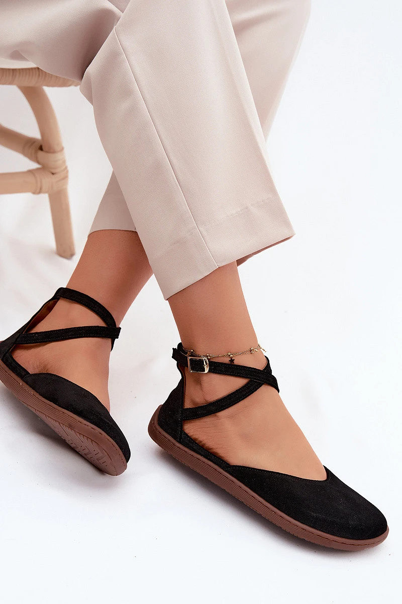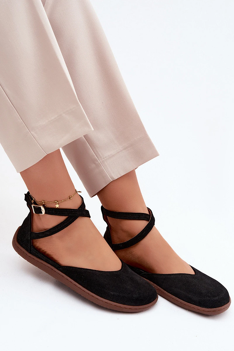 Semišové dámské baleríny Barefoot s mašličkami Zazoo 320 Černé