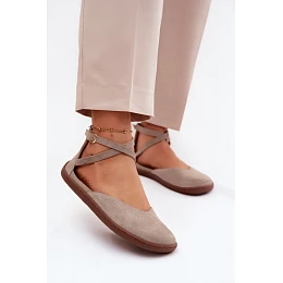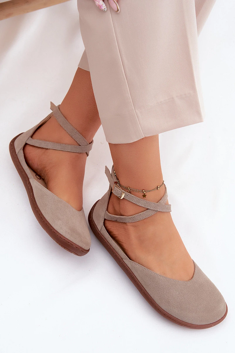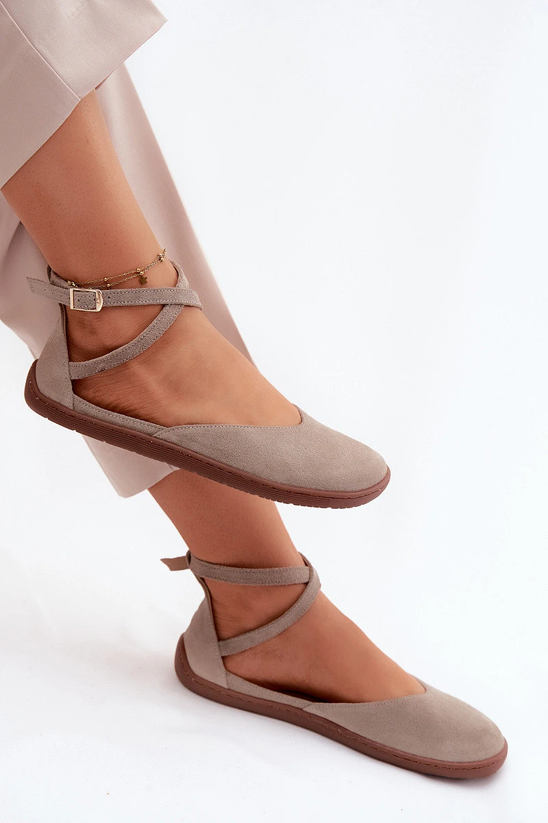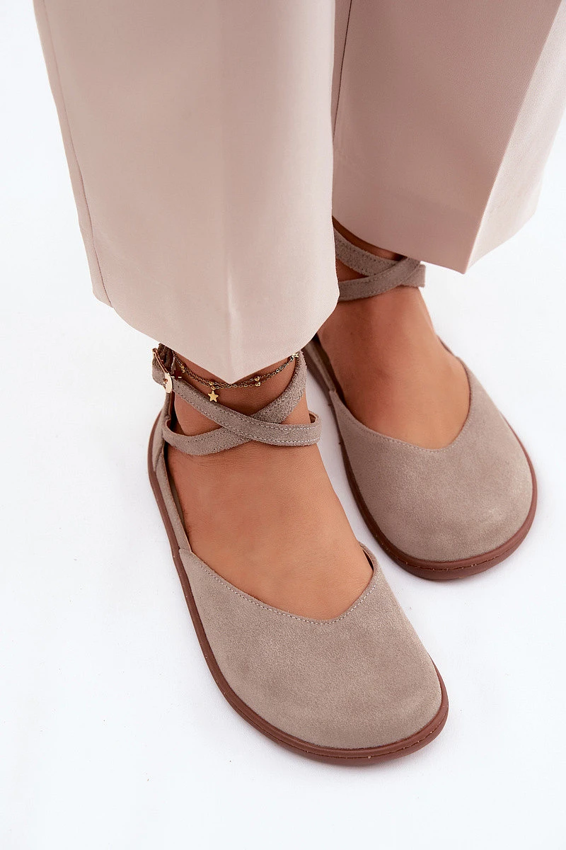 Semišové dámské baleríny Barefoot s pásky Zazoo 320 Cappuccino
