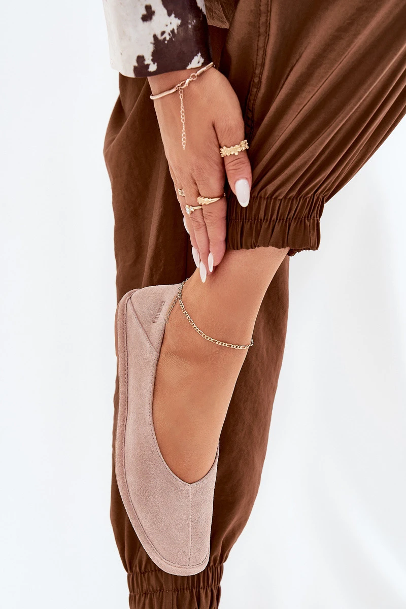 Dámské baleríny od Big Star, vyrobené z přírodní nubukové kůže, které spojují eleganci s pohodlím. Špičky jsou jemně zaoblené, což zajišťuje pohodlí po celý den. Měkká stélka zaručuje další pohodlí, což tyto baleríny činí ideální volbou na každodenní nošení. Skvěle se hodí k různým stylizacím a spojují jednoduchost s jemným stylem. Při výběru velikosti se řiďte tabulkou velikostí.