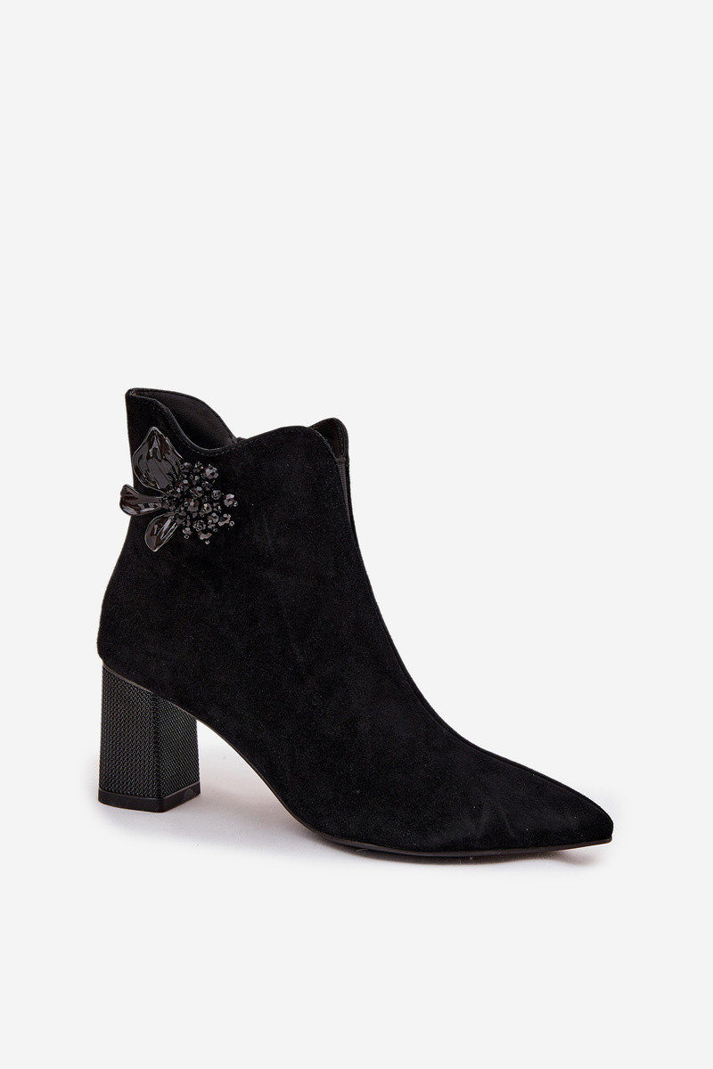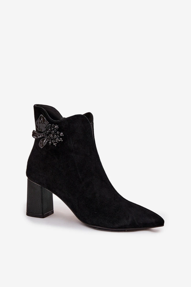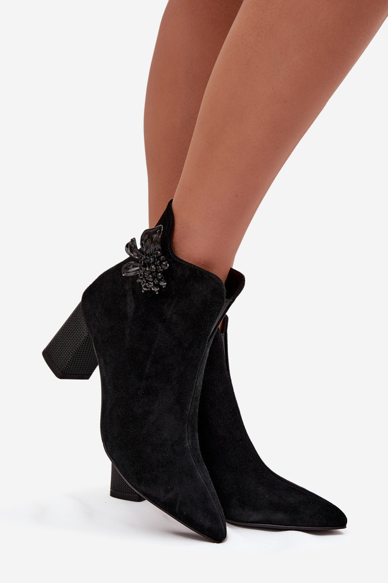 Semišové dámské boty na podpatku s ozdobou model 21713945 Černé - D&A