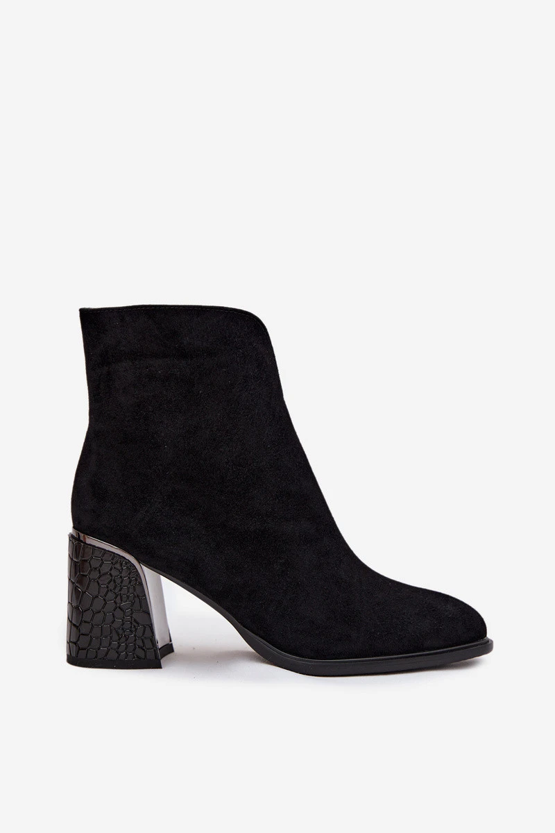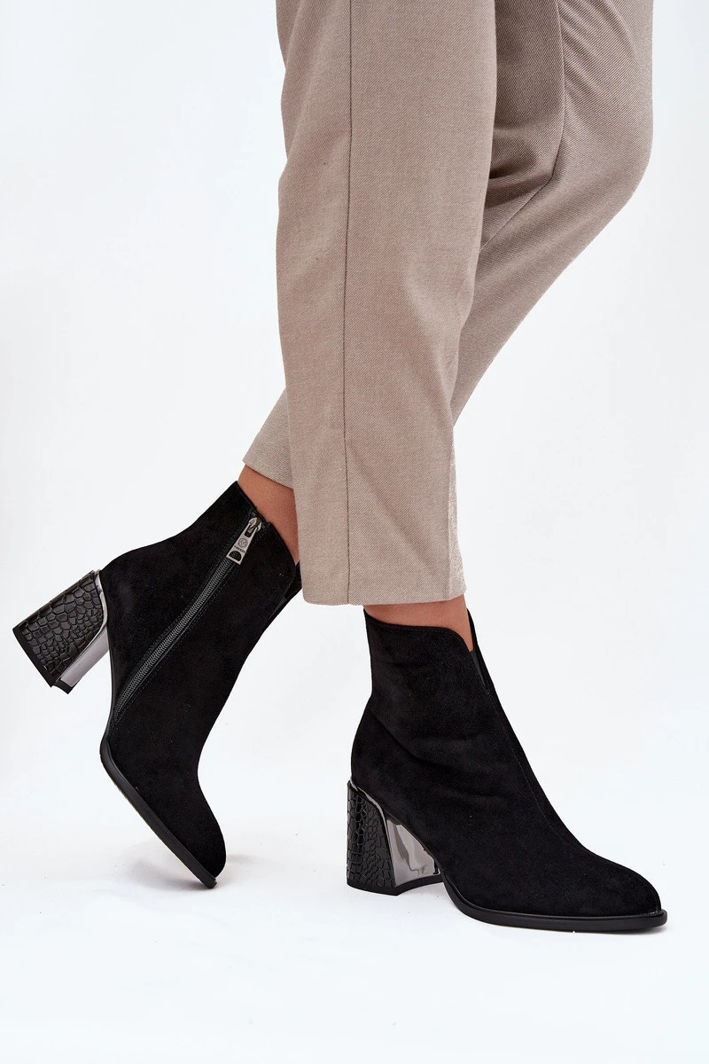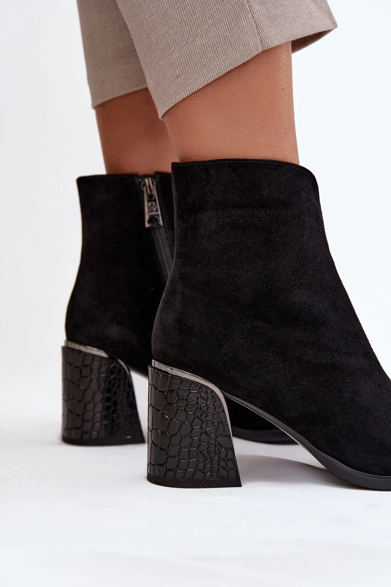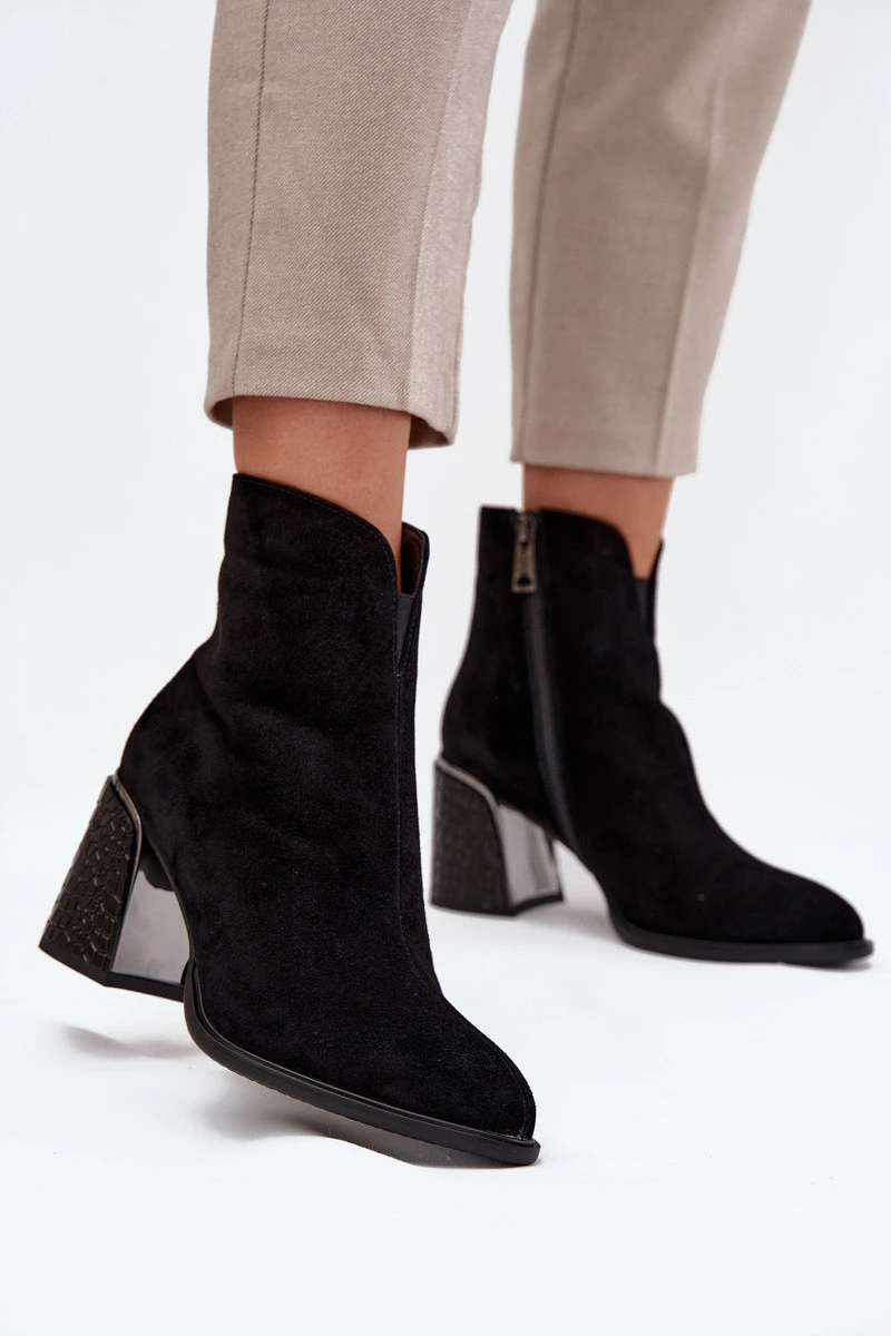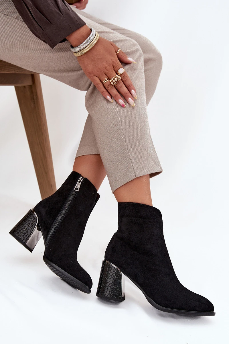 Semišové dámské kotníkové boty na podpatku s rytím zateplené Vinceza 66801 černé