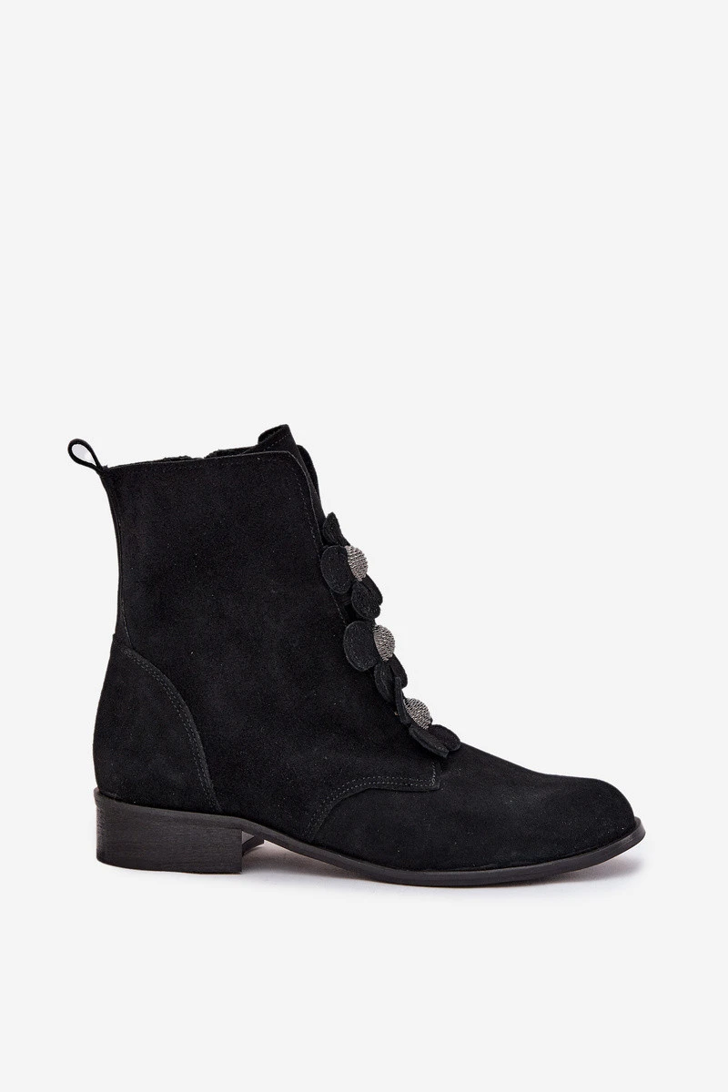 Semišové dámské kotníkové boty Zazoo 3085 černé s ozdobnými květinami