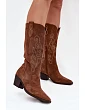Dámské kozačky v kovbojském stylu jsou mimořádně moderní obuv na jarně-jižní sezónu. Vyrobena z přírodního semiše. Stabilní, nízký podpatek zajišťuje, že jsou pohodlné a ideální na nošení každý den. Model se zasouváním s dodatečným zapínáním na zip usnadňuje obutí bot. Svršek sahá před koleno. Kožená, měkká stélka zajistí pohodlí během nošení. Tyto kozačky skvěle ladí s různými stylizacemi. Určitě by měly být součástí vašeho šatníku! Při výběru velikosti se řiďte tabulkou velikostí.