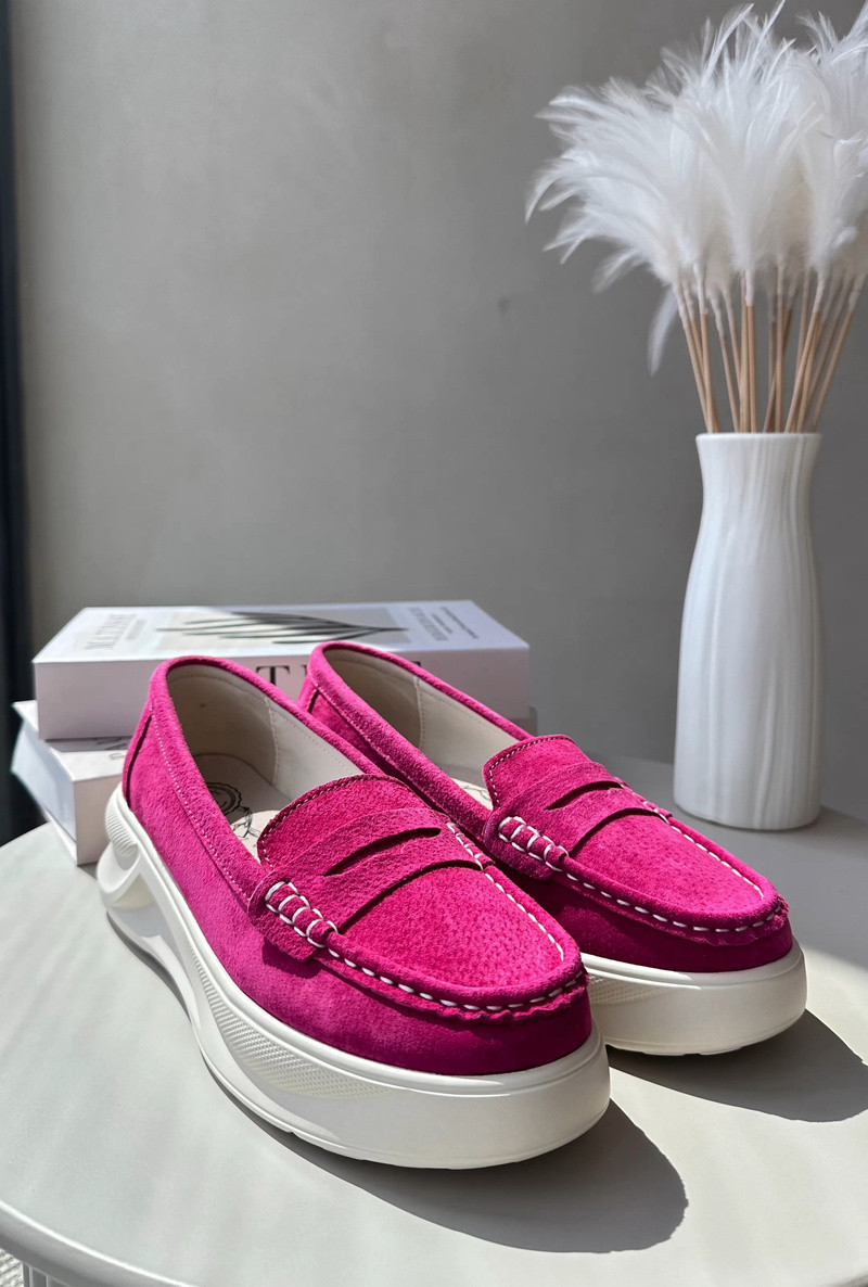 Dámské mokasíny vyrobené z přírodního semiše. Umístěné na platformě a lehkém podpatku. Zaoblené špičky. Ideální pro různé stylizace, tyto mokasíny spojují eleganci a pohodlí. Určitě byste je měla mít ve svém šatníku! Při výběru velikosti se řiďte tabulkou velikostí.