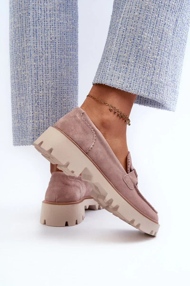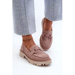 Semišové dámské mokasíny s ozdobou D&A Pink
