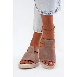 Semišové dámské pantofle na platformě se zlatou přezkou tmavě béžové Zemela