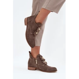 Semišové dámské polobotky s ozdobnými květinami model 21707536 tmavě béžové - Zazoo