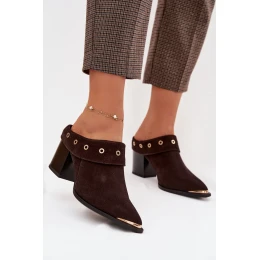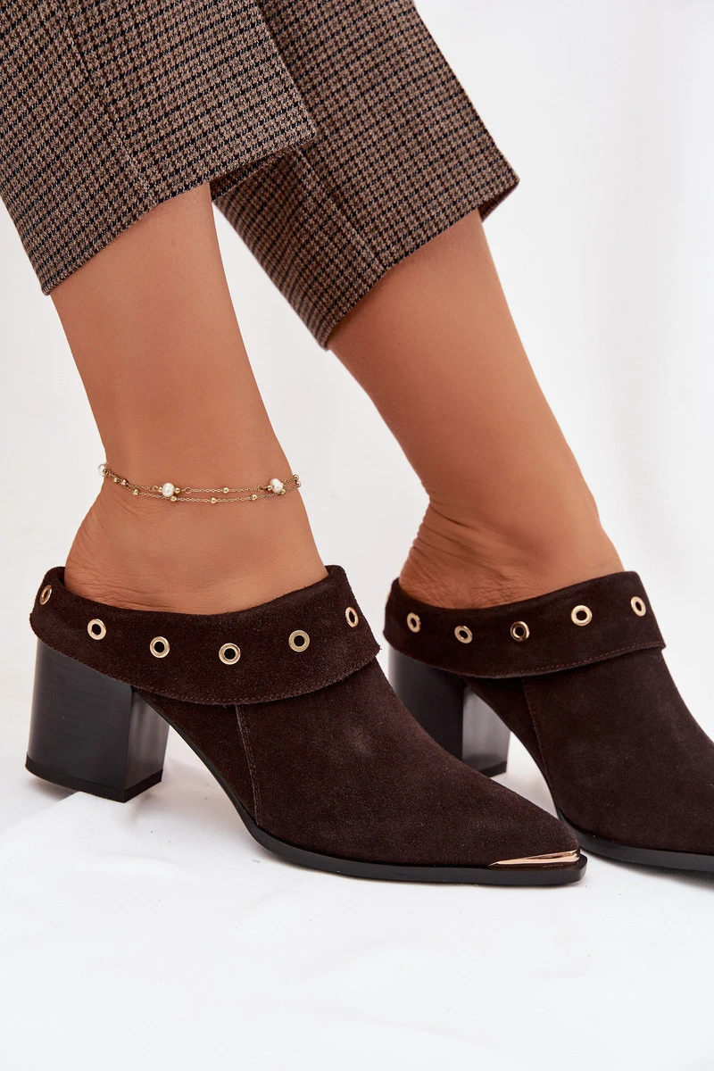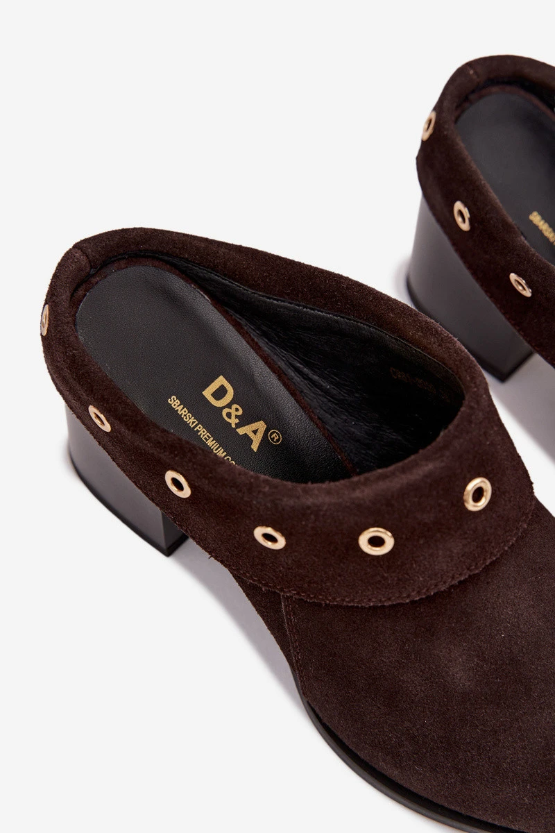 Semišové dámské sandály na podpatku D&A model 22031840 čokoládové - S.Barski