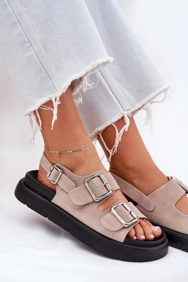 Dámské sandály značky Big Star, vyrobené z přírodní semišové kůže, jsou elegantní volbou na teplé dny. Usazené na platformě, zajišťují komfort a stabilitu po celý den. Tento model se vyznačuje dvěma nastavitelnými pásky s přezkami vpředu, které umožňují dokonalé přizpůsobení, a zapínacím páskem vzadu, který poskytuje další stabilitu. Tyto stylové sandály budou skvělým doplněním letních outfitů, spojující funkčnost s módním vzhledem. Při výběru velikosti se řiďte tabulkou velikostí.