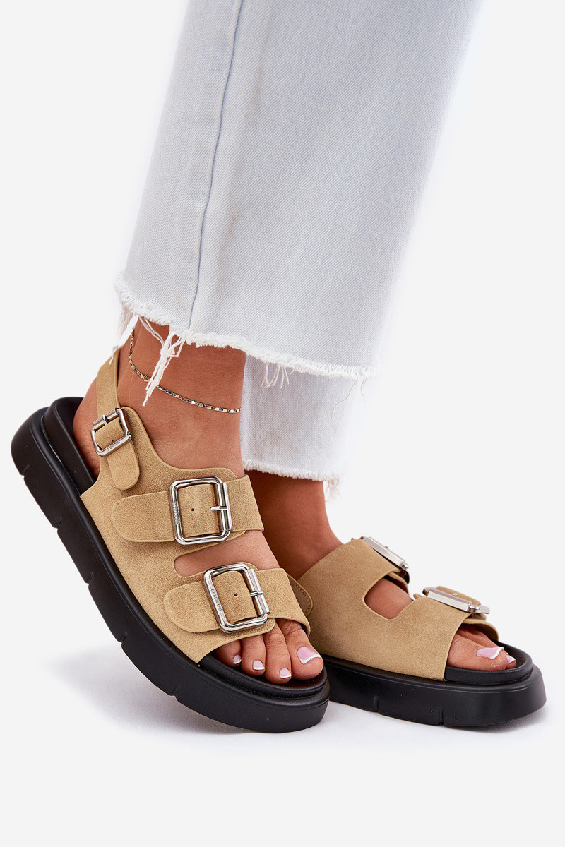 Semišové Dámské Sandály S Přezkami Big Star RR274665 Béžové