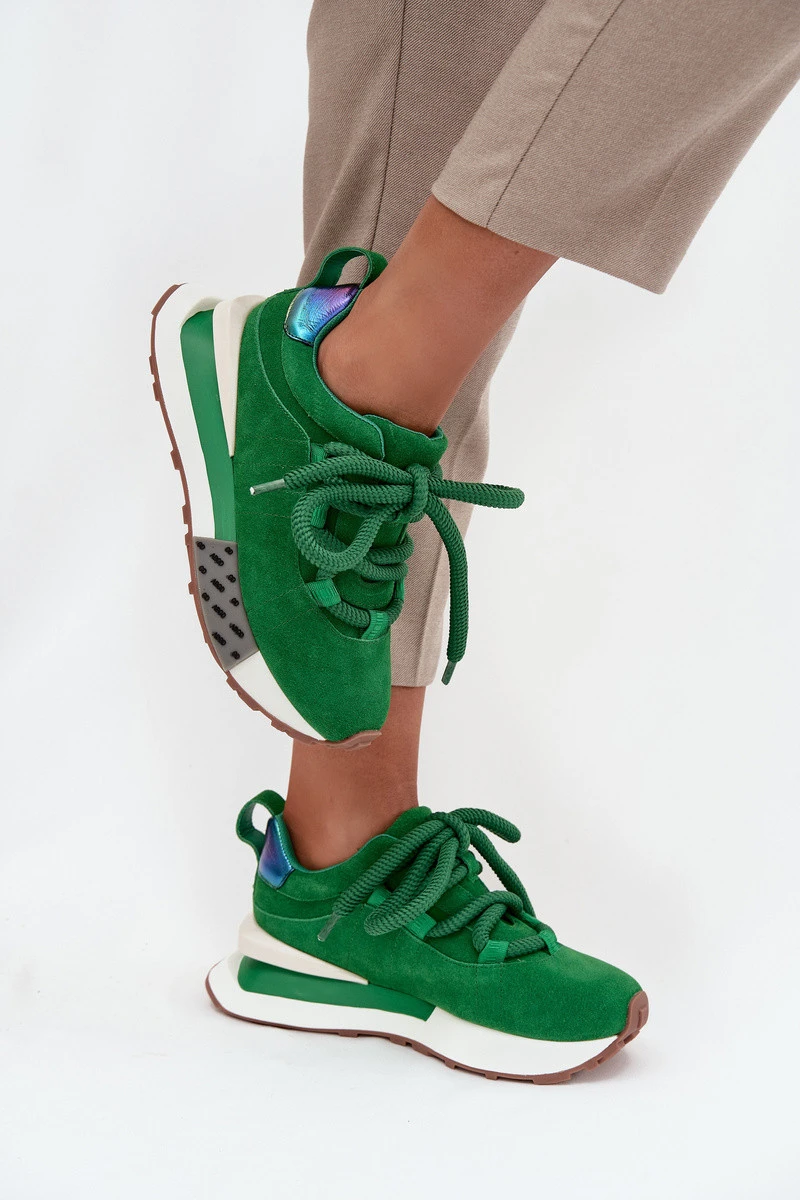 Semišové dámské tenisky na platformě s šněrováním zelené model 21710412 - Artiker