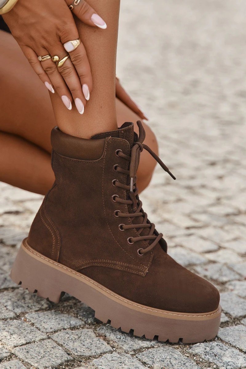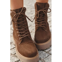 Semišové dámské workery s šněrováním Big Star SS274792 hnědé