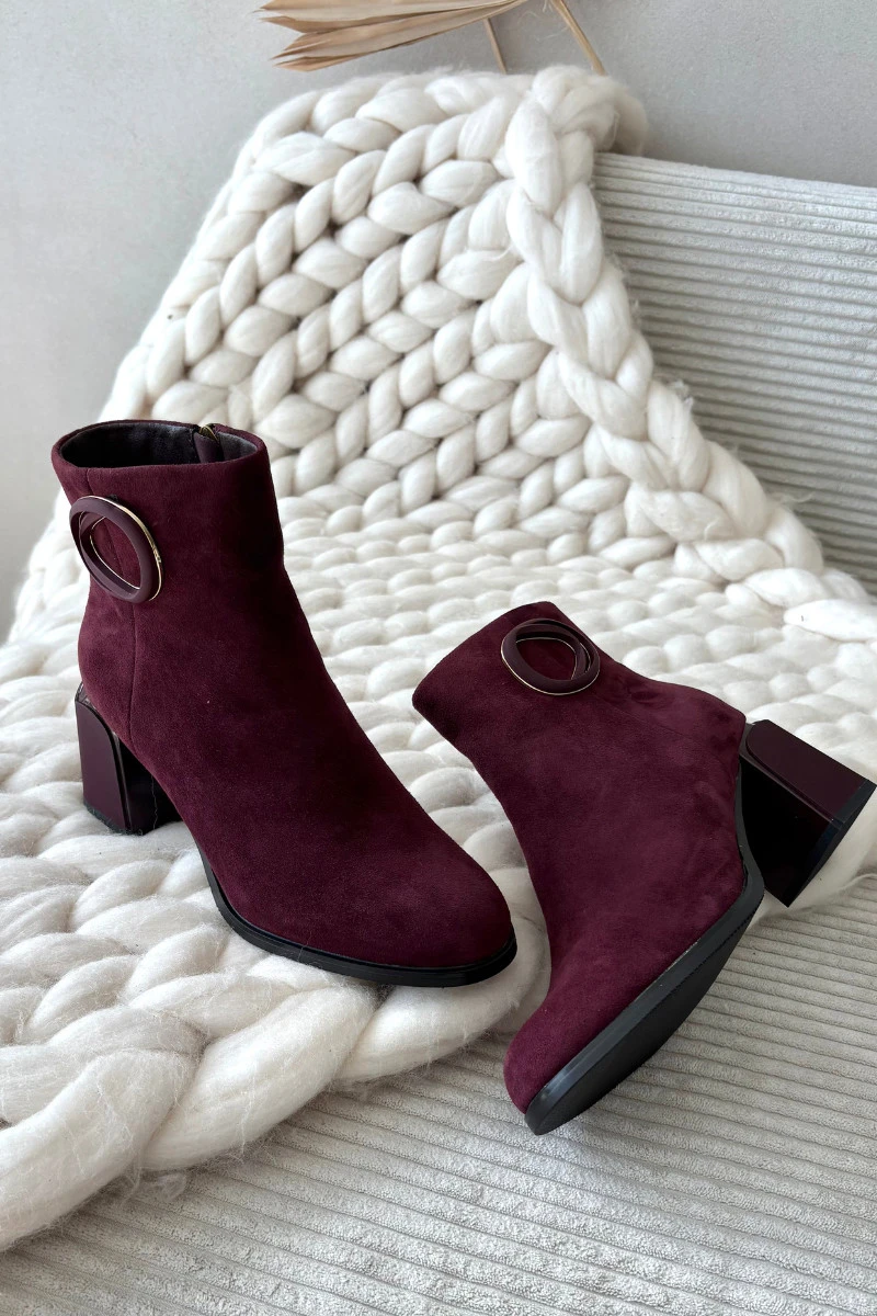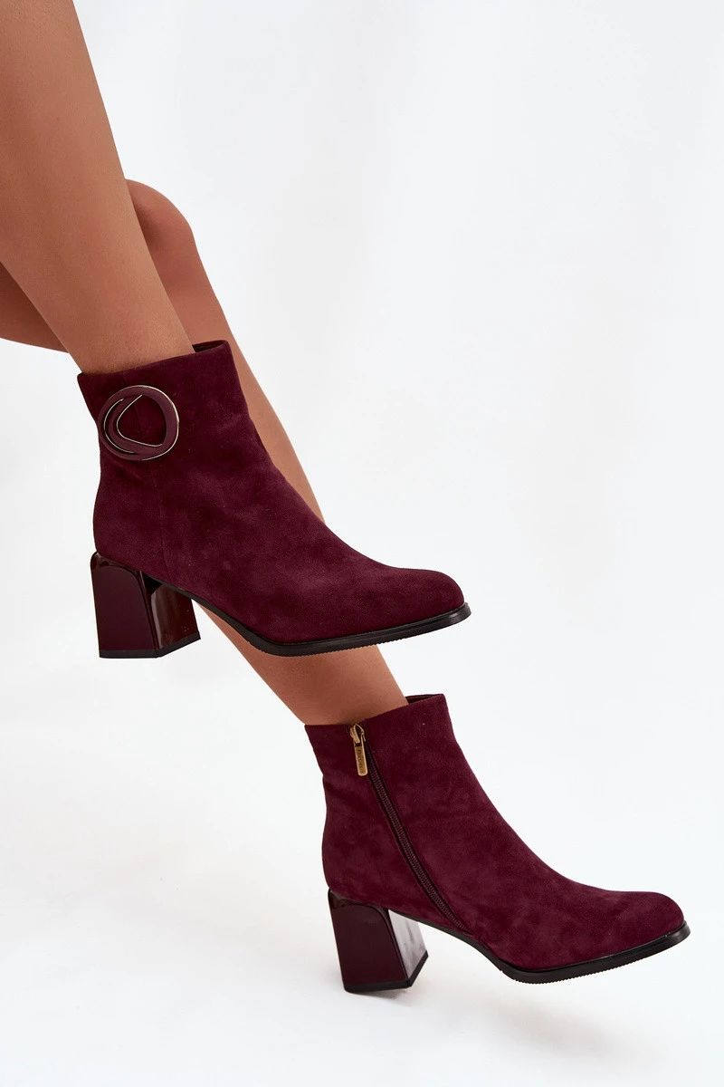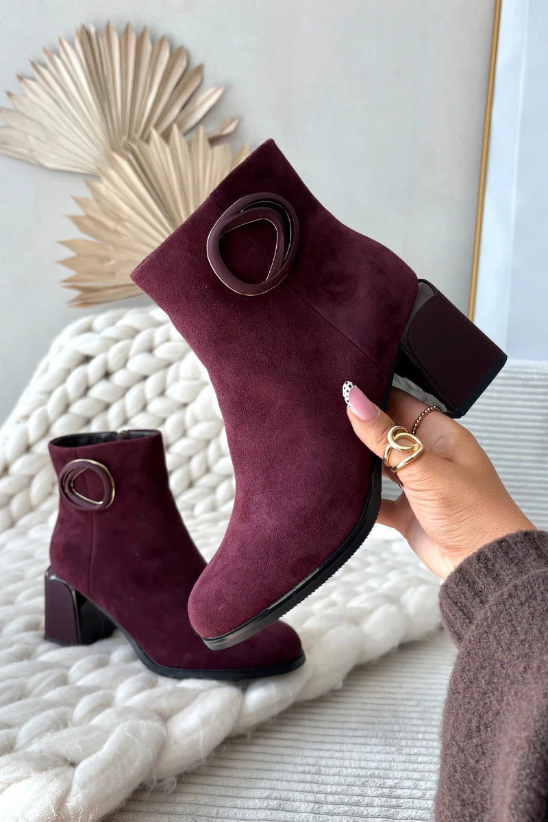 Semišové kotníčkové boty na podpatku s vyztuženým detailem Artiker 57C0016 bordó