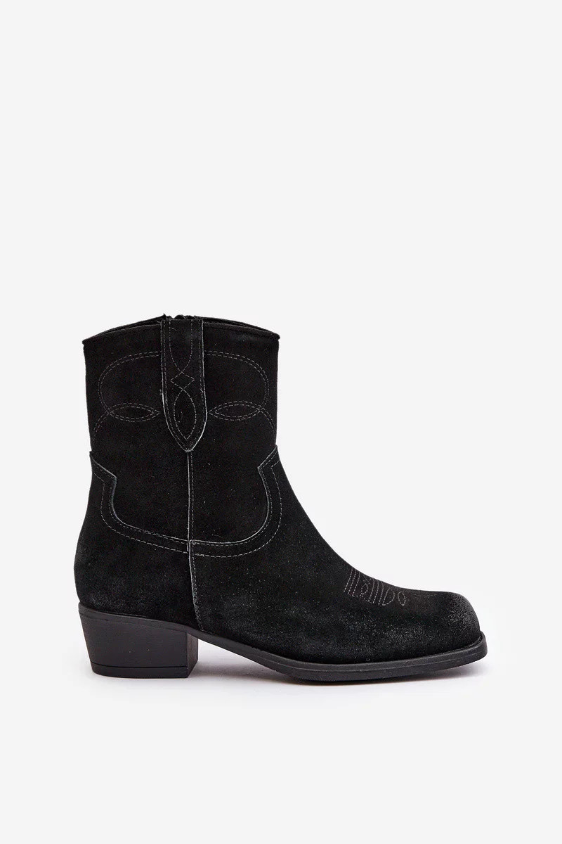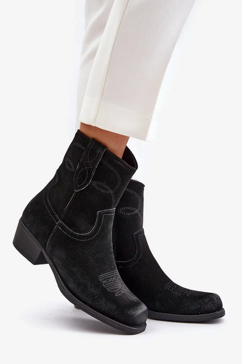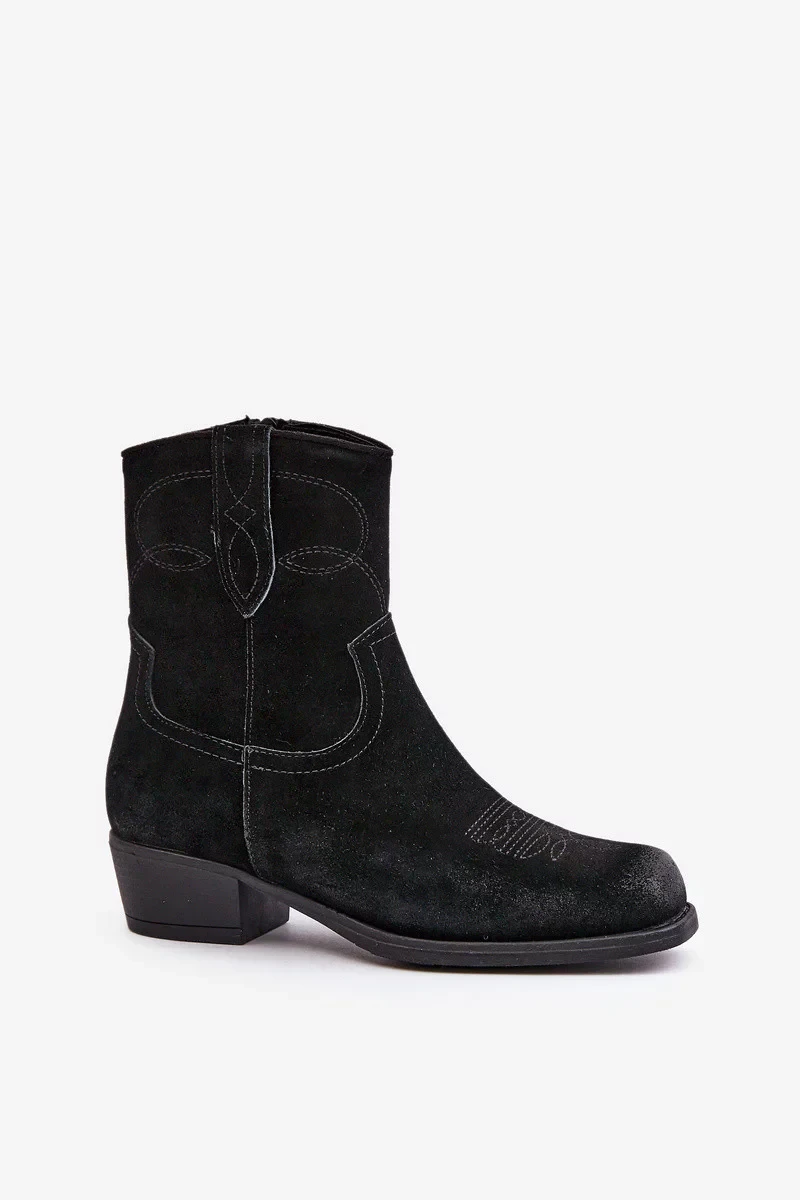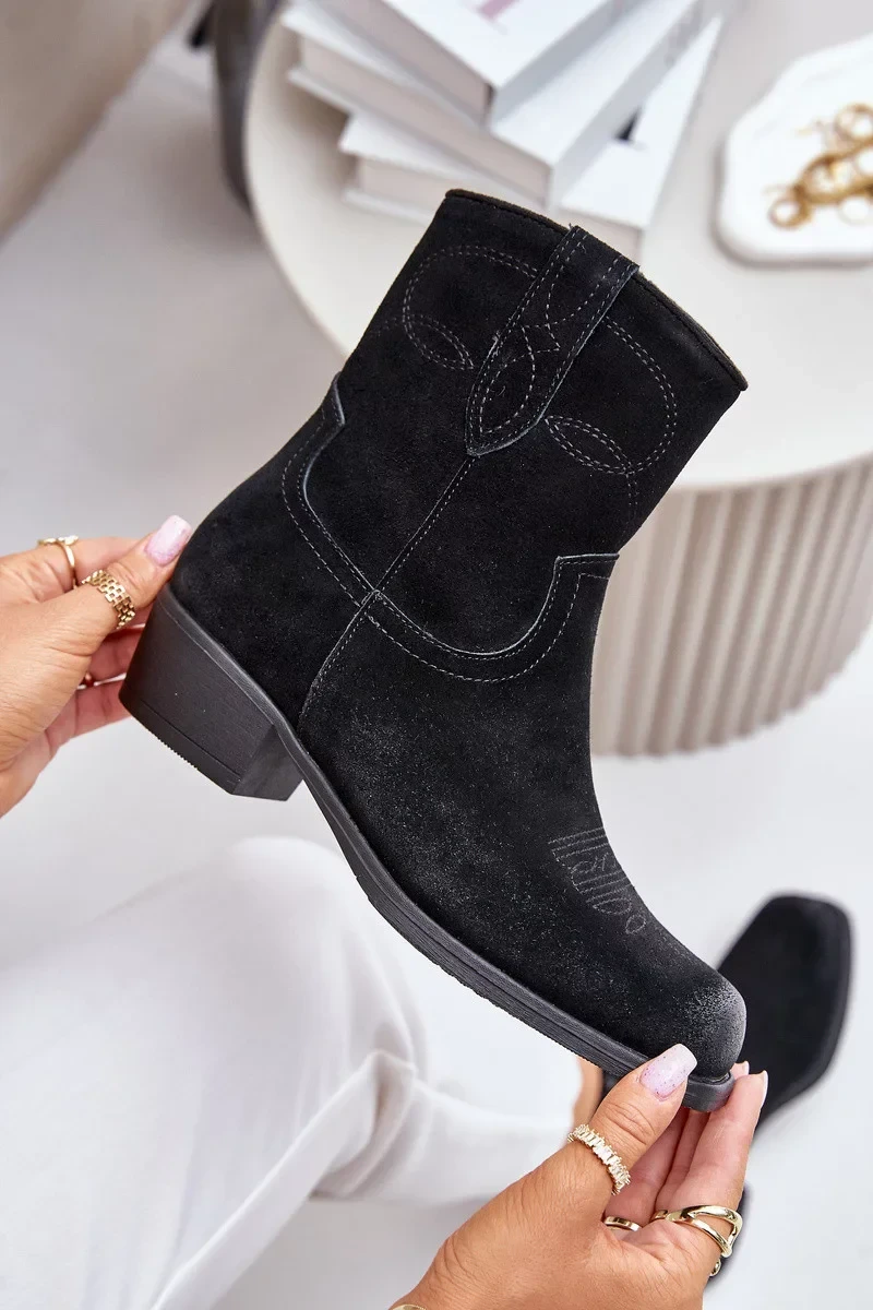 Semišové Kotníkové Boty Kovbojky Dámské Na Nízkém Podpatku Zateplené Sergio Leone Černé