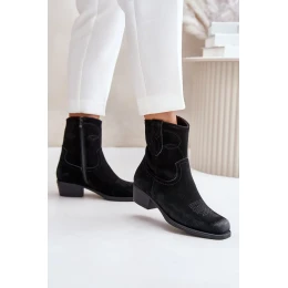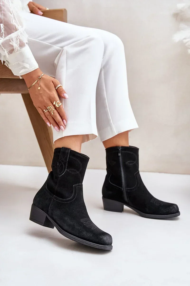 Přidání recenze k Semišové Kotníkové Boty Kovbojky Dámské Na Nízkém Podpatku Zateplené Sergio Leone Černé