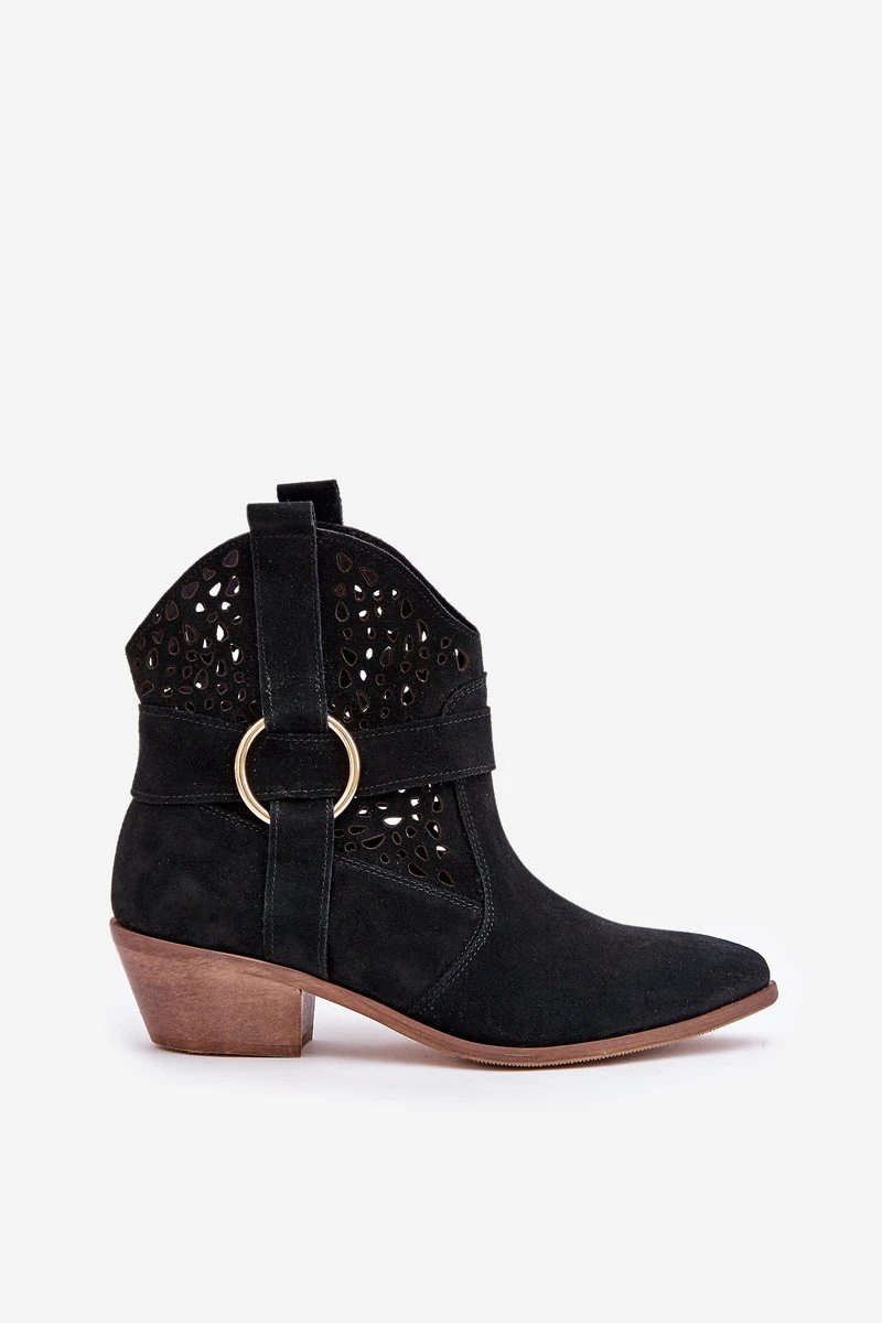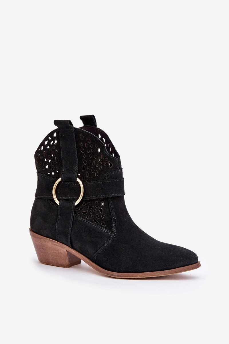 Stylové a elegantní dámské kotníkové boty vyrobené z přírodní semišové kůže, které dokonale kombinují módní vzhled s pohodlím nošení. Model je na nízkém podpatku, ideální na každodenní nošení i pro formálnější stylizace. Perforovaný svršek zdobený jemným akcentem jim dodává výjimečný charakter. Špičaté špičky opticky prodlužují nohu, čímž dodávají eleganci každé kombinaci. To je vynikající volba pro ženy, které si cení kvality, stylu a pohodlí. Při výběru velikosti se řiďte tabulkou velikostí.