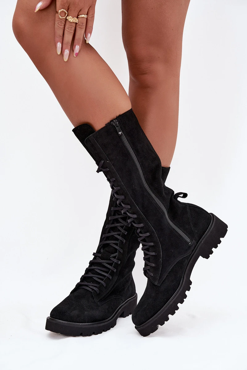 Semišové kotníkové boty se šněrováním do půli Černé model 21707488 - Zazoo