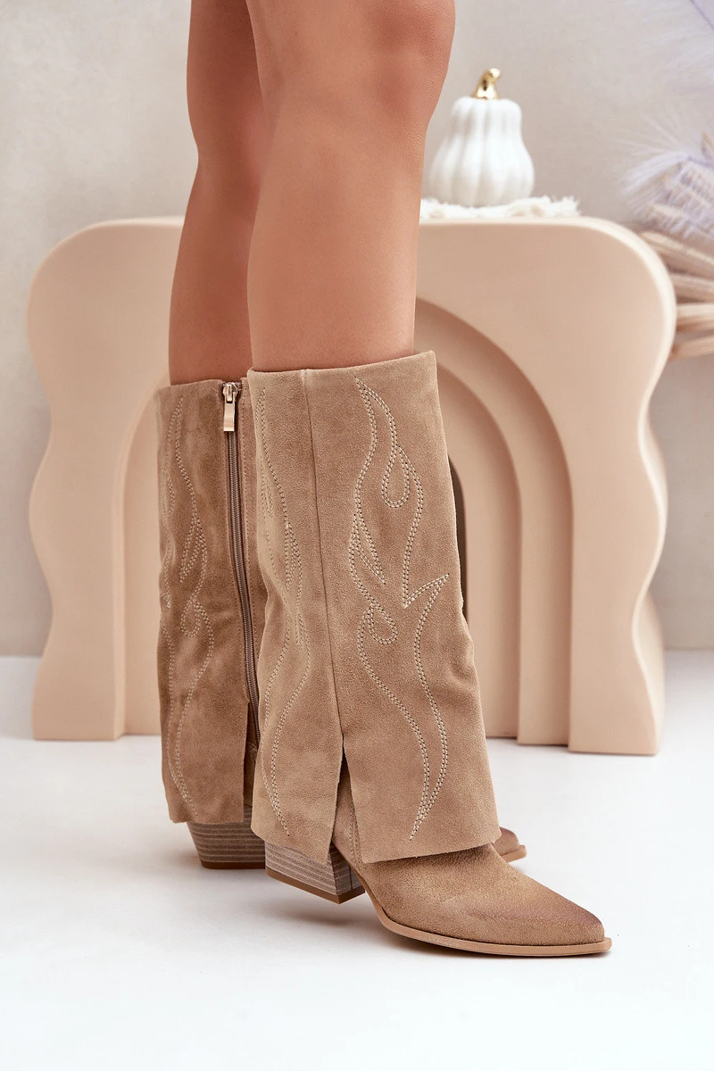 Semišové Kozačky Do S Svrškem Na Podpatku Béžové model 21680139 - Zazoo