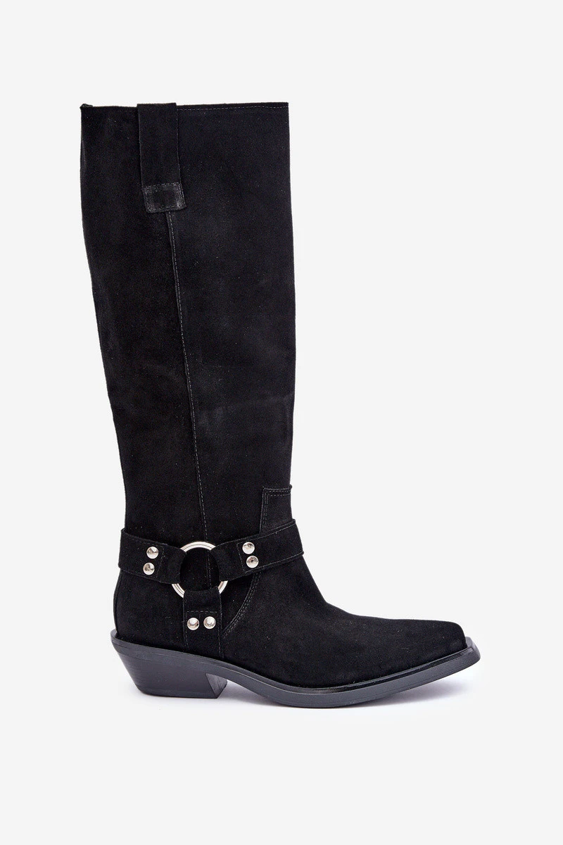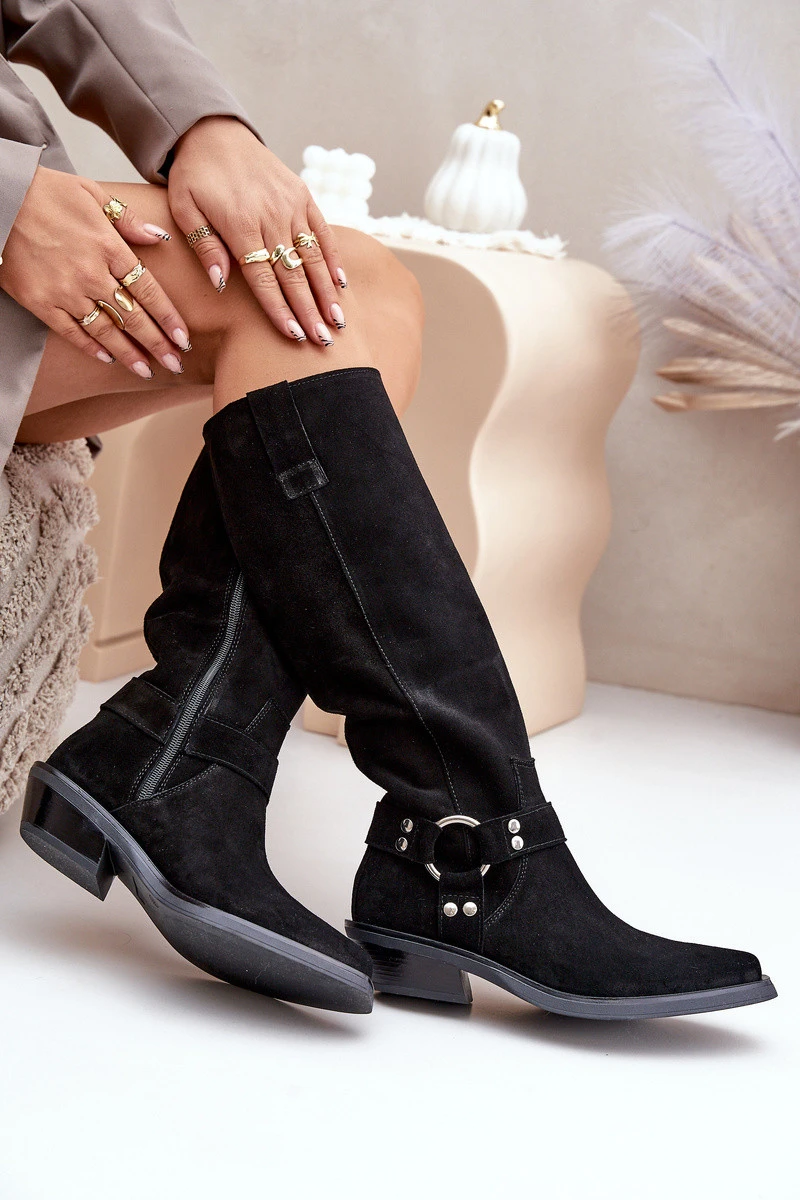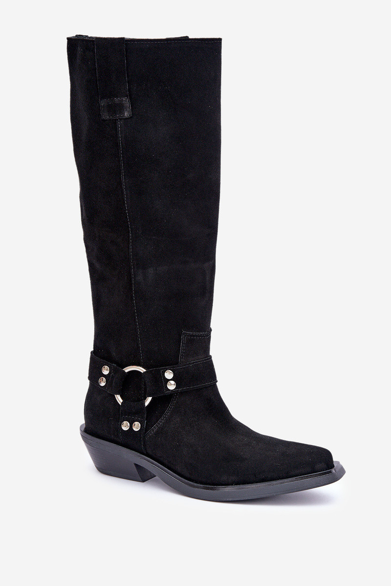 Semišové Kozačky Kovbojky Na Nízkém Podpatku S Dekorací model 21680168 Černé - Zazoo