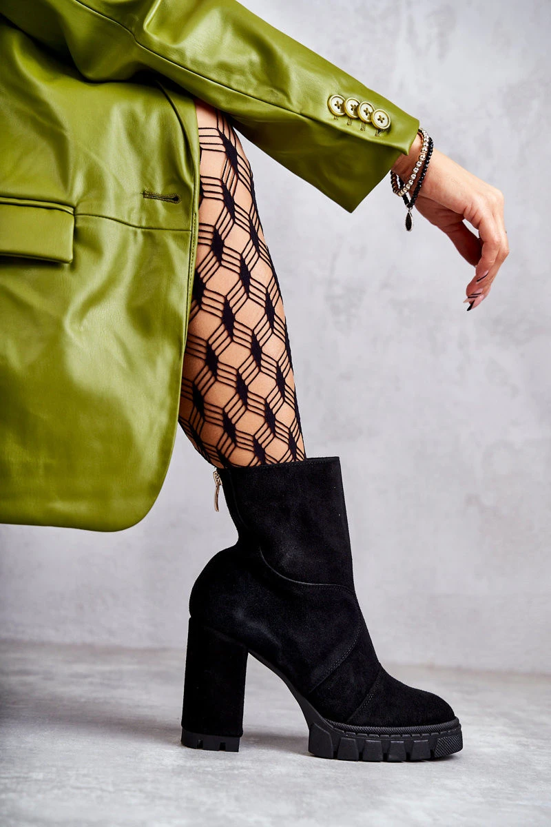 Semišové Kozačky Na Podpatku černé model 21597737 - Boto