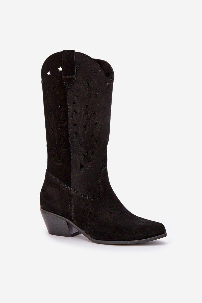 Kozačky s perforovaným svrškem do poloviny lýtek. Zapínají se na zip. Mají zpevněnou patu. Vyrobeny z přírodní semišové kůže. Špičky jsou špičaté. Tyto kozačky vám umožní vytvořit mnoho zajímavých stylizací na každodenní nošení. Měkká kožená vložka a široký podpatek zajistí stabilitu při nošení. Ažurové kozačky jsou ideální volbou pro mnoho stylizací. Při výběru velikosti se řiďte tabulkou velikostí.