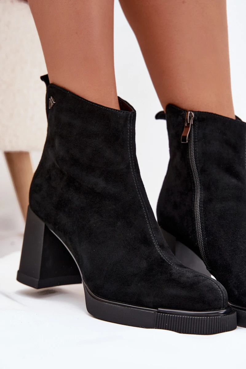 Semišové kožené dámské boty na podpatku Vinceza 91142 Černé