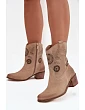 semišové kožené dámské boty s otvory na podpatku Zazoo 3844 zlaté včerněné