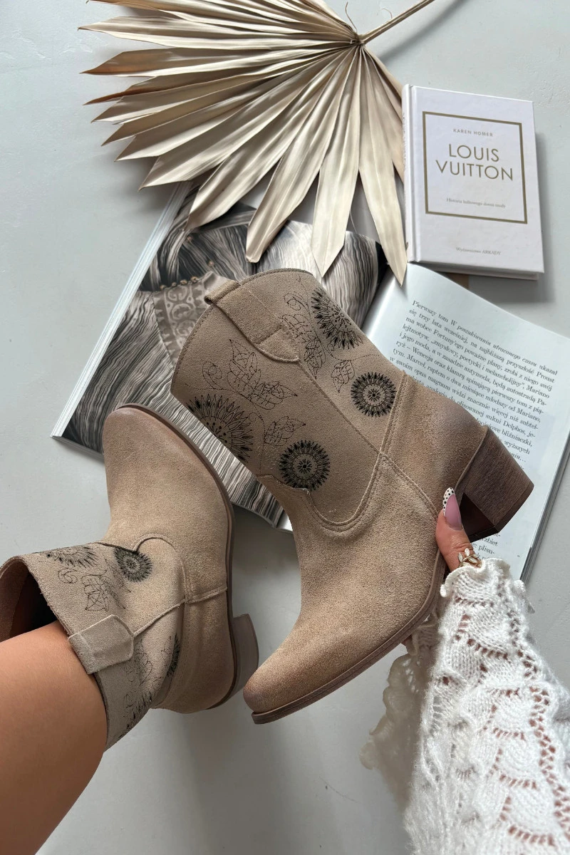 Semišové kožené dámské kotníky s perforací na podpatku Zazoo 3844 Béžové