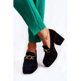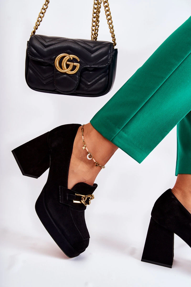 Elegantní dámské lodičky jsou vyrobeny z vysoce kvalitního přírodního semiše. Na přední straně mají ozdobu na řetízek. Pohodlí vám zajistí měkká stélka a stabilní pata v podobě vyššího masivního bloku. Lodičky mají vyztužený podpatek. Klasický, nazouvací model. Čtvercový nos. Při výběru velikosti použijte tabulku velikostí.