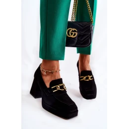 Semišové lodičky s ozdobným řetízkem model 21593258 černá - Laura Messi