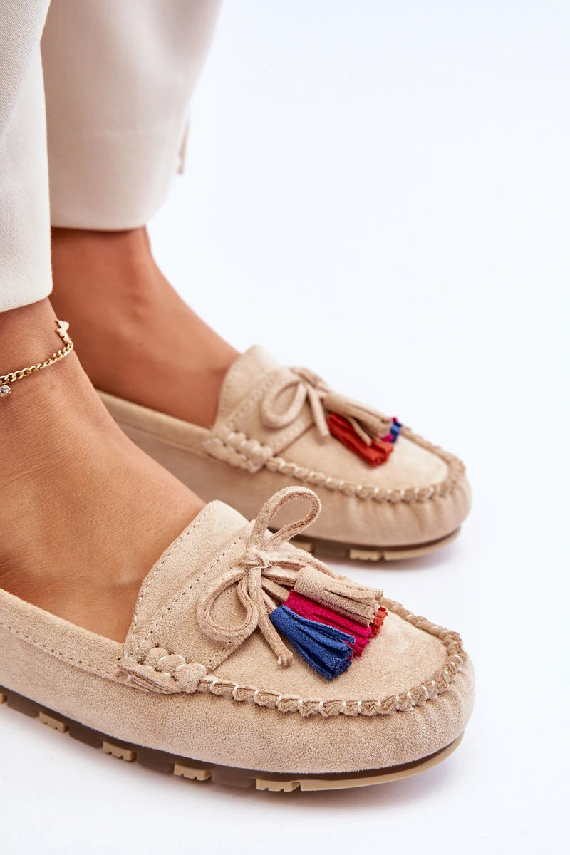 Semišové Mokasíny S Mašlí A Třásněmi Béžove Dorine
