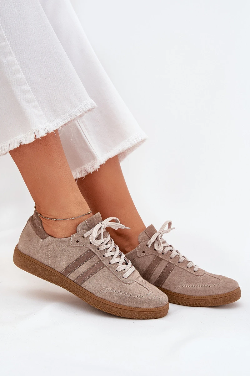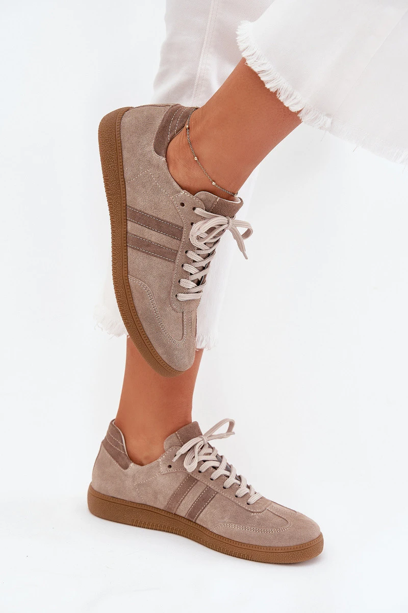 Semišové Nízké Tenisky Dámské Tmavě Béžové Zazoo N1068