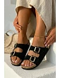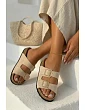 Semišové pantofle na korkové podrážce s přezkami béžové Tavira
