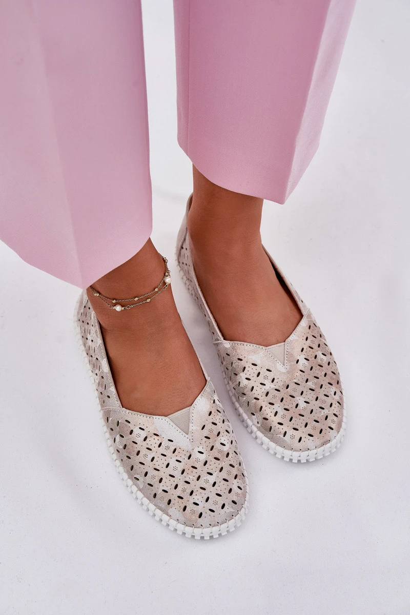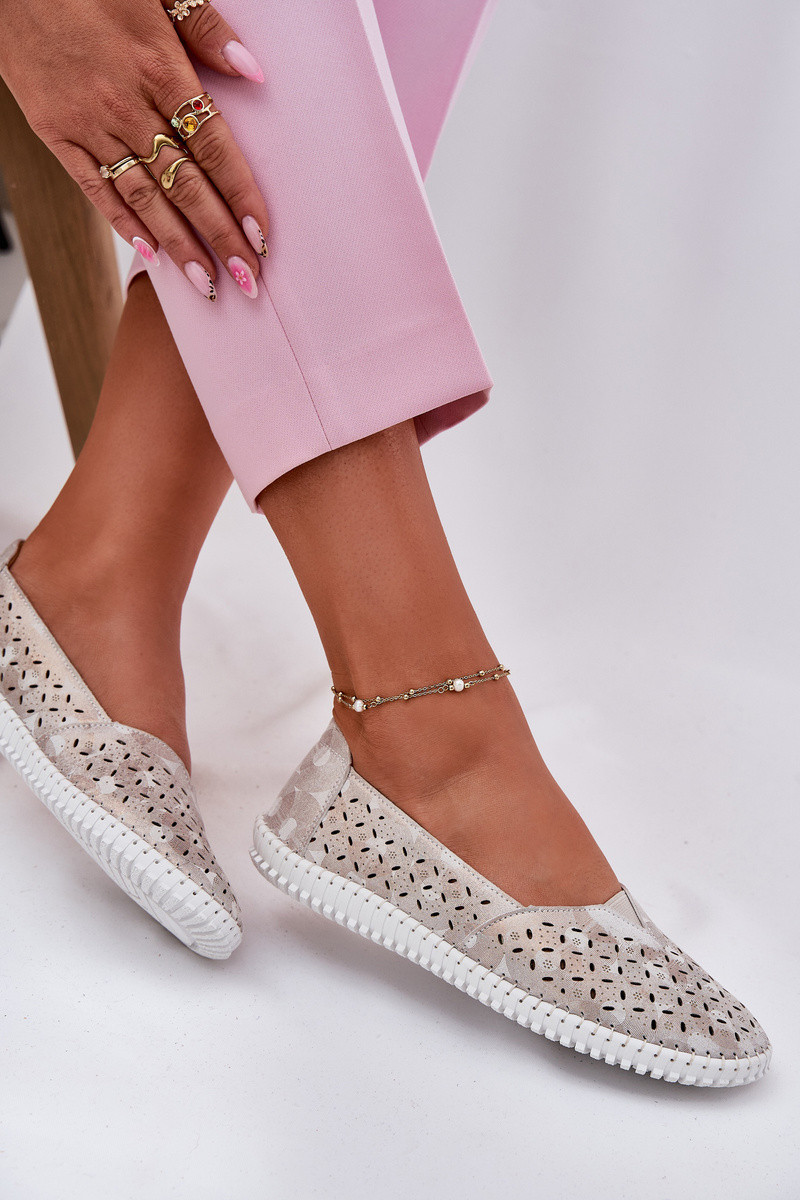 Semišové perforované dámské polobotky zlatobéžové Chulieta