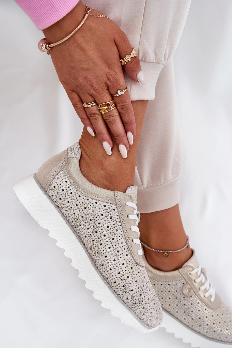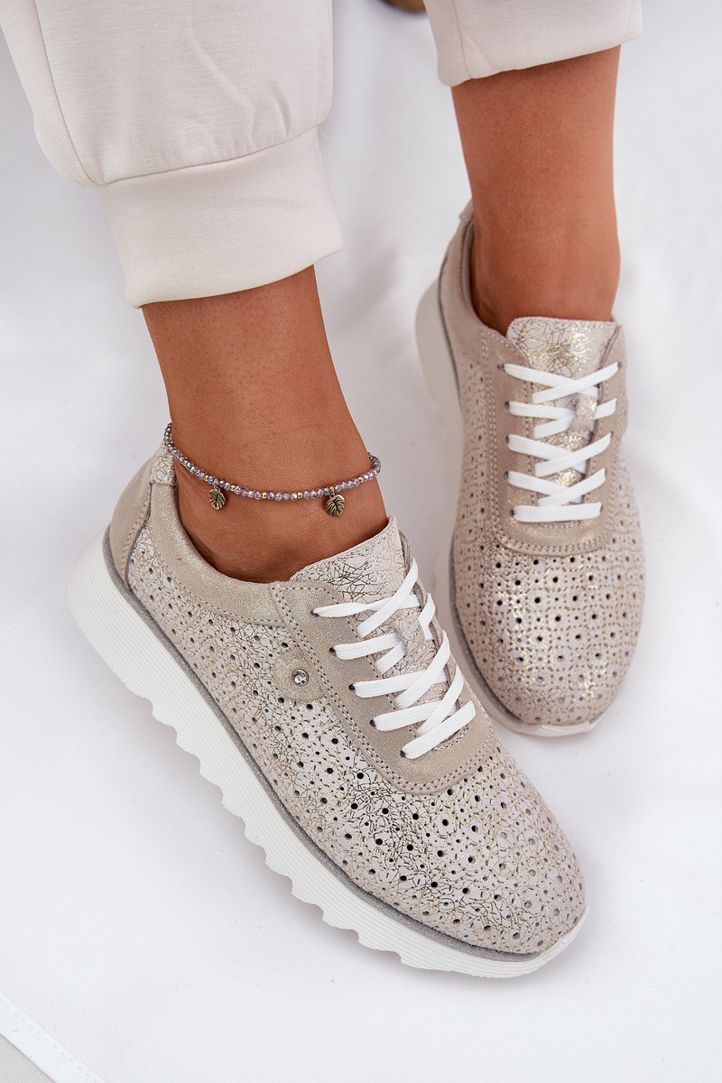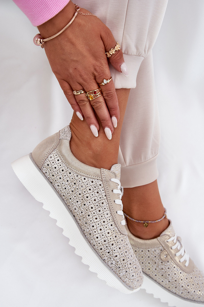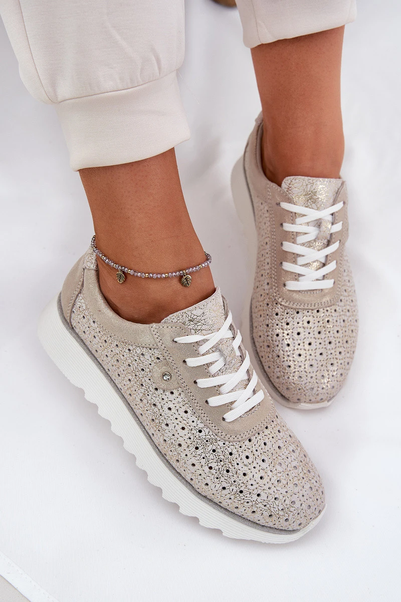 Semišové perforované tenisky na platformě zlaté LR51-927