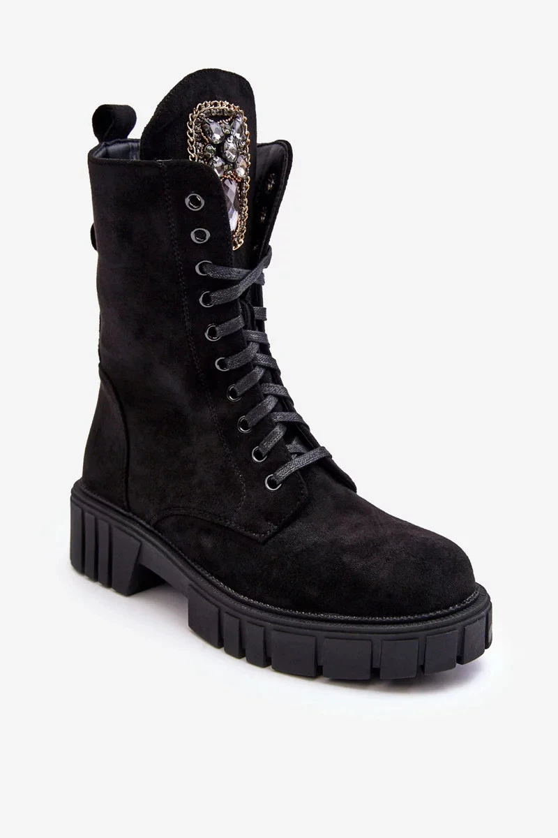 Semišové pracovní kotníkové boty s bižuterním zdobením, černý Marx