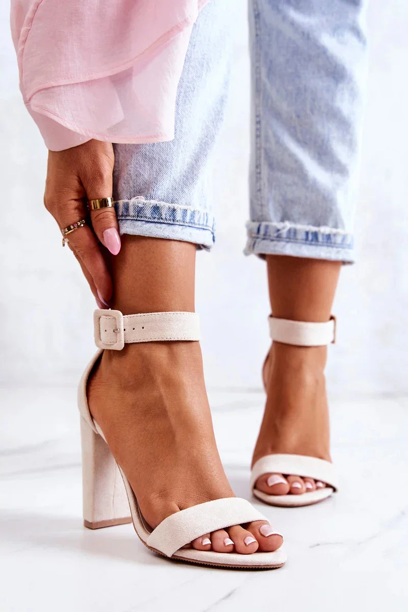 Klasické a pohodlné sandály na vysokém podpatku. Boty jsou vyrobeny výhradně z ekologického semiše. Mají nastavitelný popruh se zapínáním na přezku. Ideální pro různé příležitosti - pro setkání s přáteli, rodinnou oslavu nebo párty! O vaše pohodlí se postará měkká stélka. Určitě si prohlédněte celou naši kolekci dámských sandálů! Při výběru velikosti použijte tabulku velikostí.