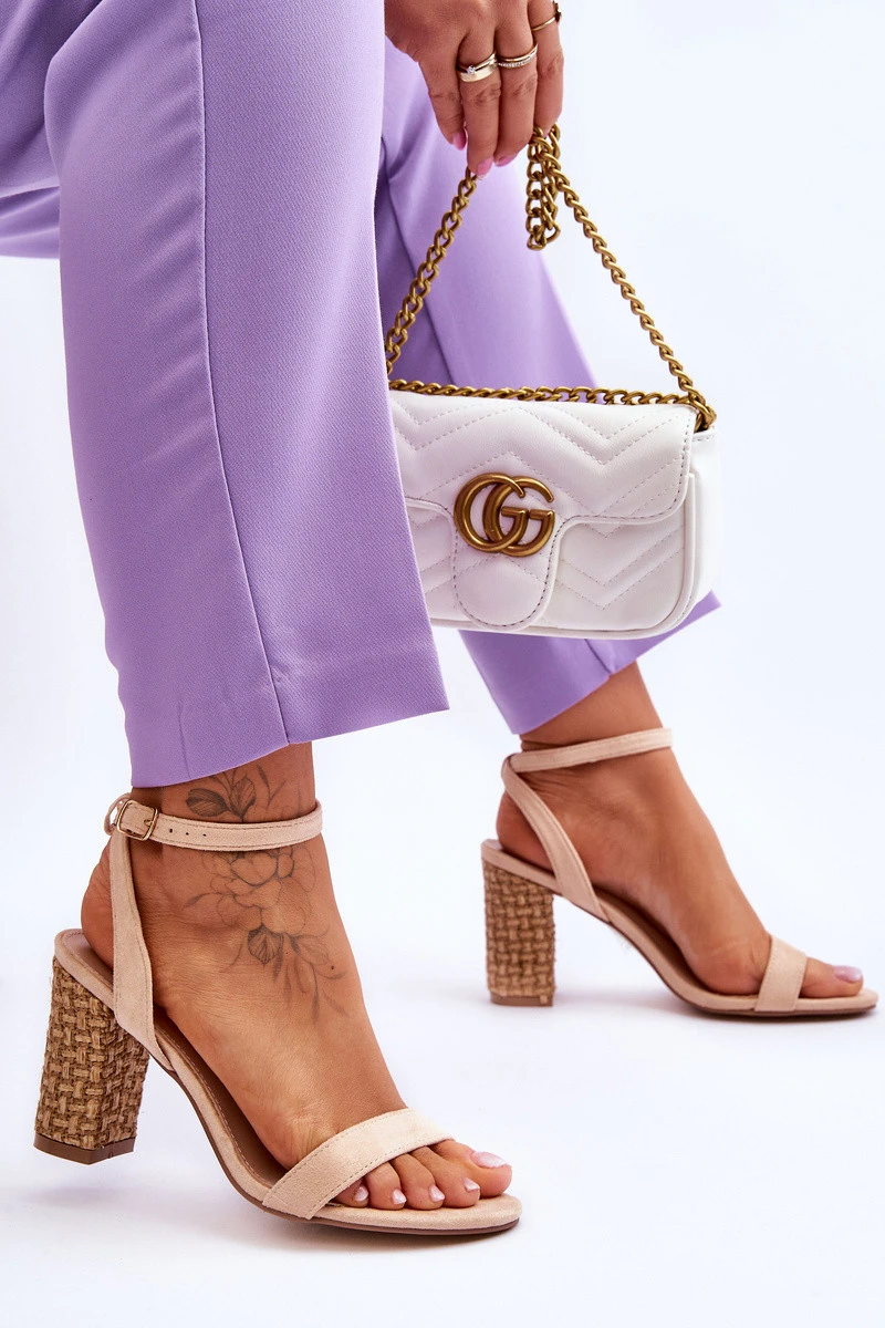 Semišové Sandály Na Spleteném Podpatku Béžové Selila