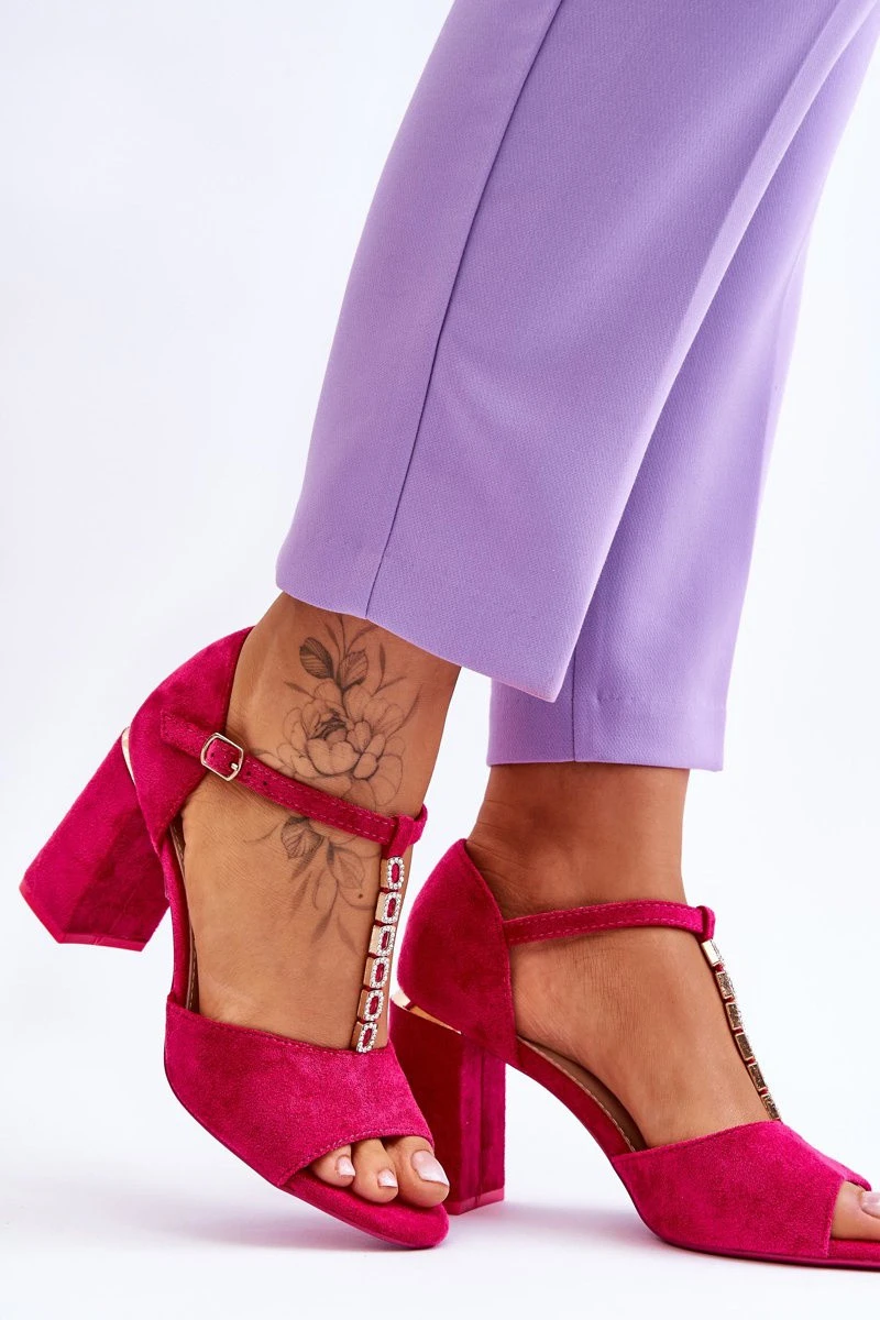 Klasické dámské sandály jsou vyrobeny z ekologického semiše. Tento model je zdobený třpytivými kamínky imitujícími zirkony. Sandály mají vyztužený podpatek a měkkou stélku z ekokůže. Tento model je postaven na podpatku v podobě sloupku a zapíná se nastavitelným páskem s přezkou. Při výběru velikosti se řiďte tabulkou velikostí.