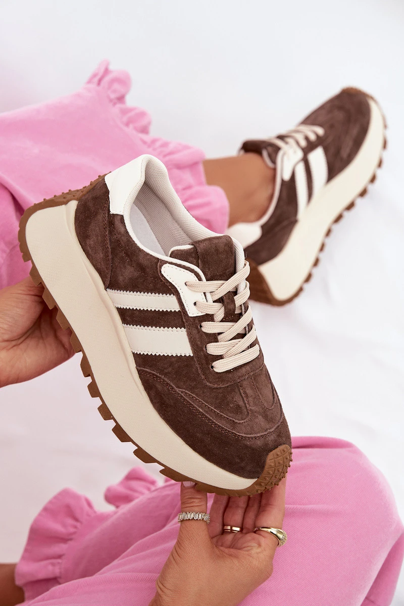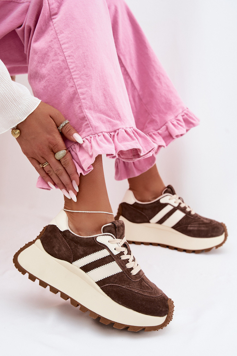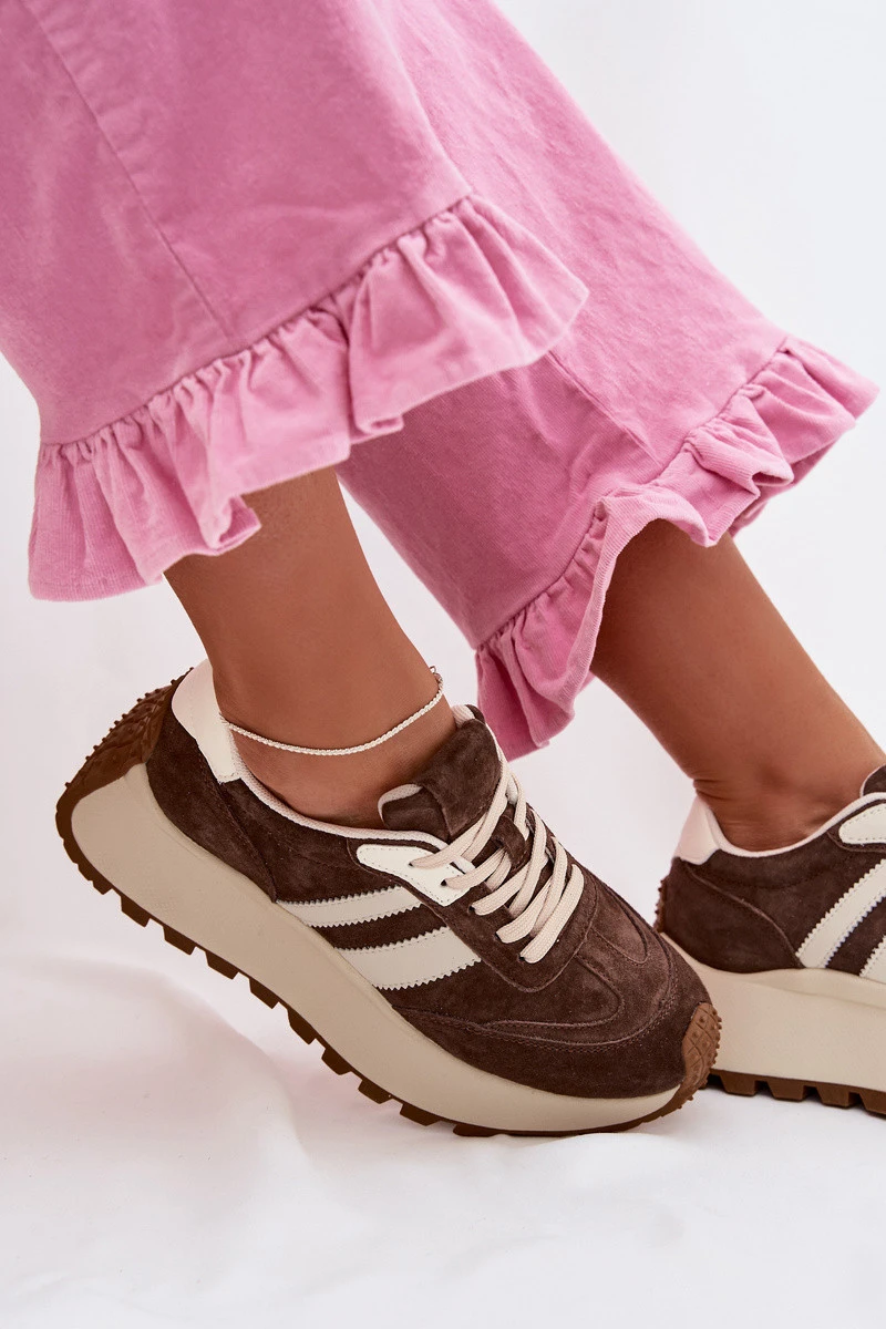 Semišové tenisky na masivní platformě D&A GR61-5986 Čokoládové