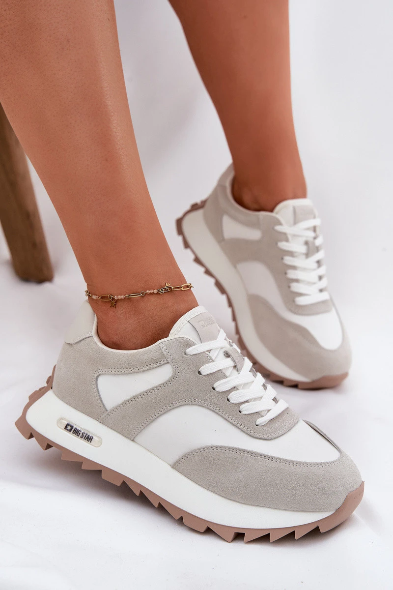 Dámské sneakersy značky Big Star kombinují eleganci a komfort. Vyrobeny z vysoce kvalitní přírodní nubukové kůže, umístěné na platformě, nabízejí stabilitu a pohodlí po celý den. Model je vybaven klasickým šněrováním, které umožňuje dokonalé padnutí na nohu. Dále vložka HI-POLY SYSTEM zajišťuje odolnost vůči oděru a deformacím, účinně absorbuje vlhkost a tlumí nárazy, což dělá tyto sneakersy mimořádně pohodlnými a trvanlivými. Ideální pro každodenní stylizace, tyto boty kombinují módní vzhled s funkčností. Při výběru velikosti se řiďte tabulkou velikostí.