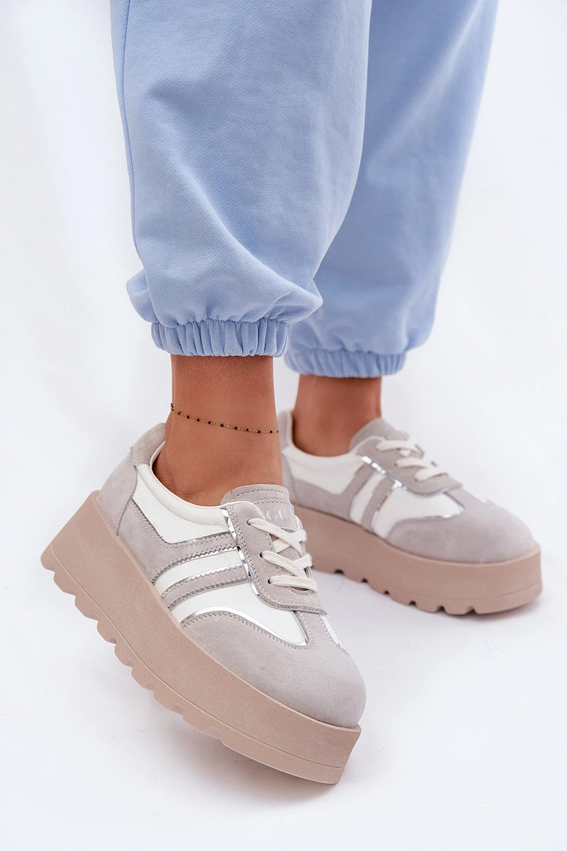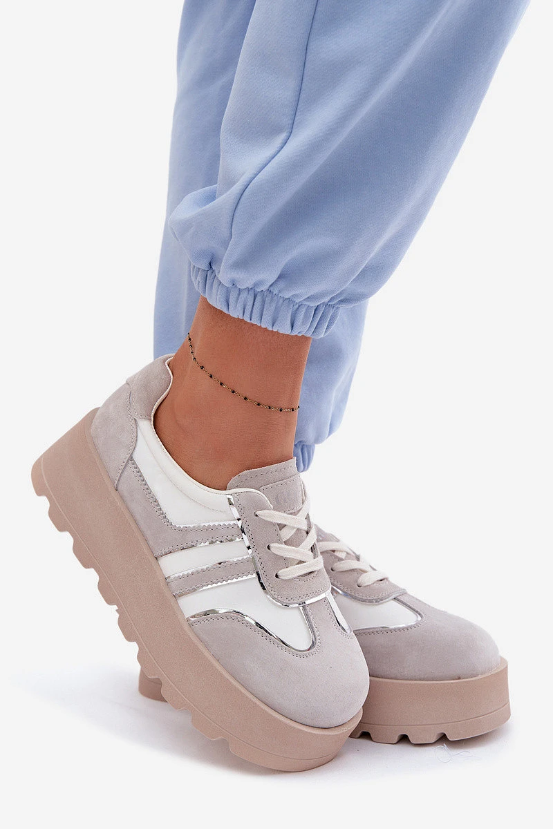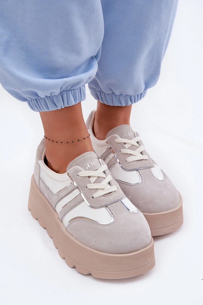Semišové tenisky na platformě model 22095152 bílé - Goe
