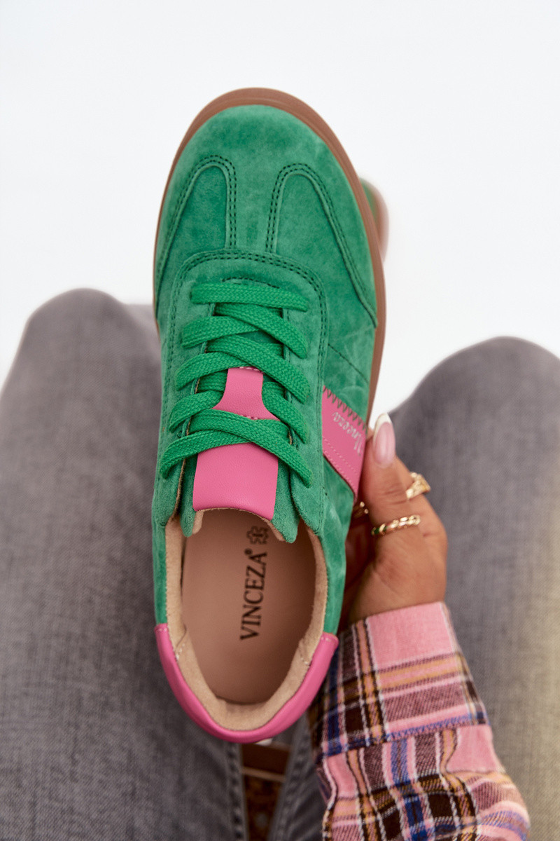 Zelené dámské semišové tenisky Vinceza kombinují pohodlí s módním designem vhodným pro každodenní nošení. Lehká konstrukce a semišový svršek poskytují komfort po celý den, zatímco výrazná zelená barva dodává botám svěží a moderní vzhled.