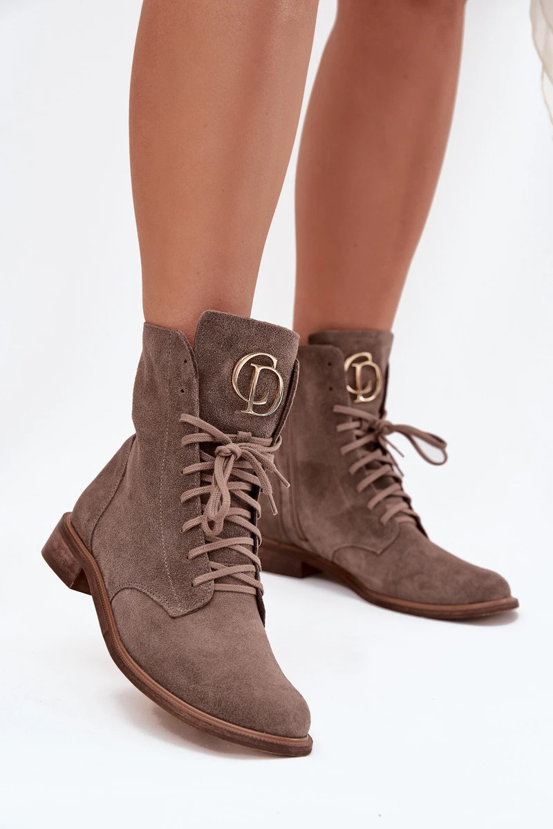 semišové workery s zlatým detailem na tmavě béžové model 21707504 - Zazoo
