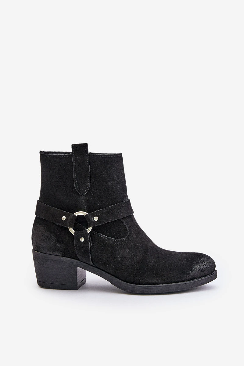 Semišové zateplené boty na podpatku černé model 21673748 - Zazoo