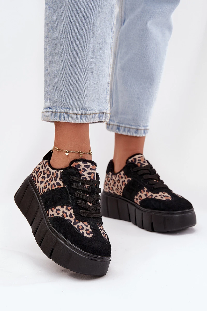 Semišové zateplené dámské tenisky na masivní platformě model 21707648 Panterka Černé - VINCEZA