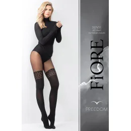 Punčochové zboží značky Fiore. Model Sense 60 DEN G6066. Výrobek je vyroben z 88 % z polyamidu a 12 % z elastanu. Výrobek pro ženy. Tloušťka: 60 DEN. Žádné označené prsty.