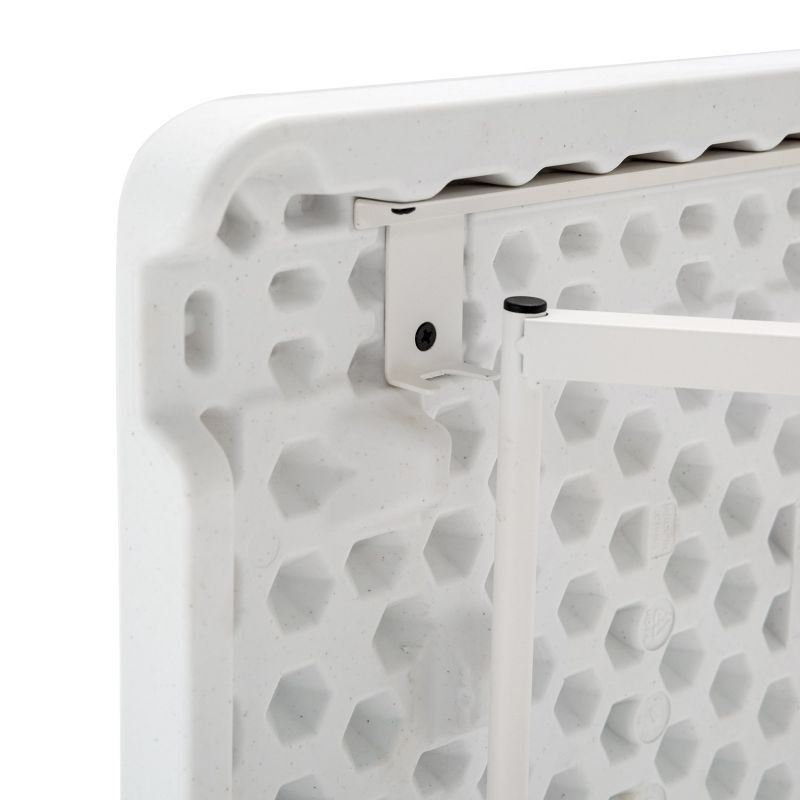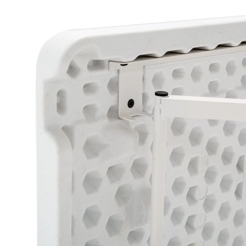 Wygodne, wyprofilowane siedzisko oraz oparcie krzesła wykonane są z trwałego polipropylenu, perforowany blat stołu wykonany z polietylenu wysokiej gęstości.