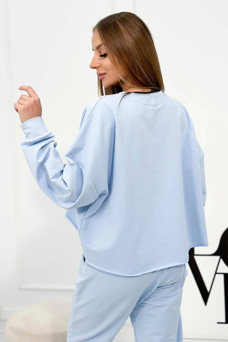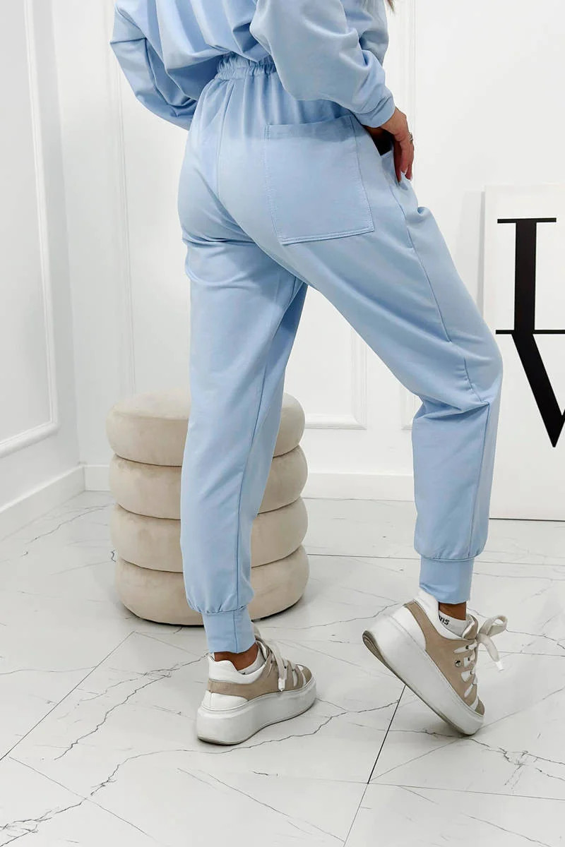 Prezentujemy Państwu komplet 2-częściowy. Komplety składa się z bluzy oraz spodni. Bluza oversize, gładka bez nadruków. Spodnie z kieszeniami i wiązaniem w pasie. Komplet wykonany jest z wysokiej jakości materiału. Rozmiar jest uniwersalny i będzie odpowiedni dla Pań w rozmiarze S lub M.